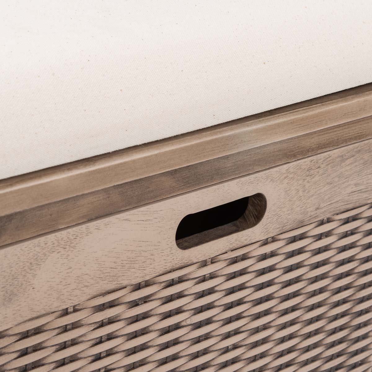 This Landers Cushion Storage Bench performs double duty as a stylish storage solution and perfect seating in an entryway or mud room. Landers gives your d??cor a touch of contemporary farmhouse charm with its soft sand finish and three spacious basket drawers.