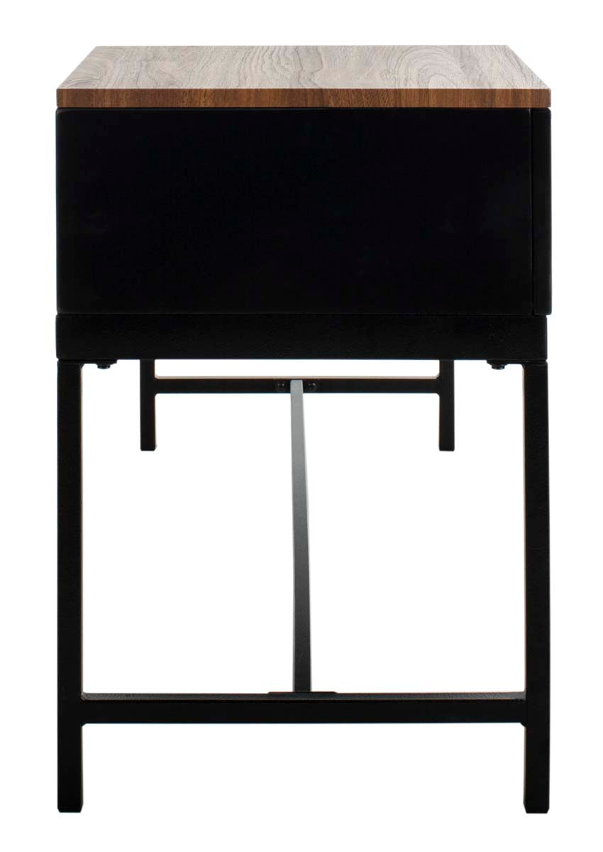 Designed with minimalist lines and a warm touch, this contemporary bench with storage is perfect for any entryway. Constructed with light brown wood and black metal, its generous drawer and layered tops offer flexible, smart seating and organization.