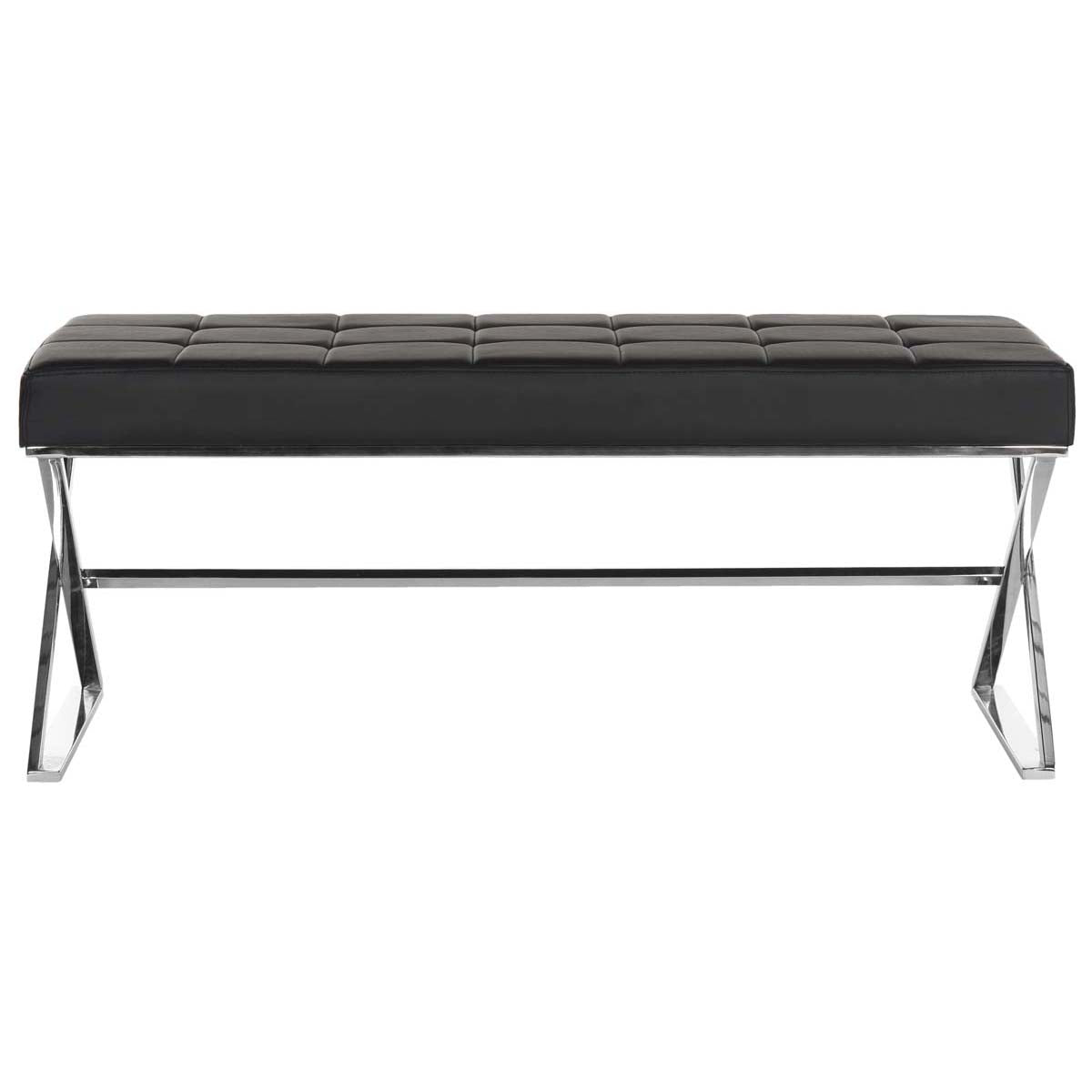 Inspired by the playful style of the Italian Memphis movement, this brilliant black ottoman in PU leather adds instant warmth and character to any modern space. Polished stainless steel legs make it a contemporary classic.