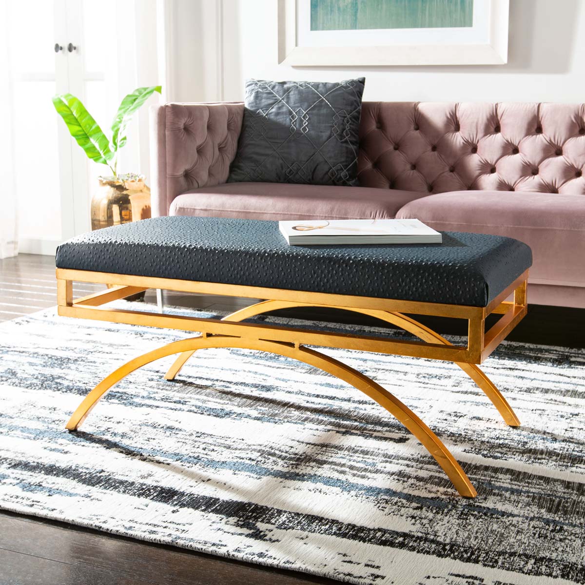 Safavieh Moon Arc Bench - Navy/Gold