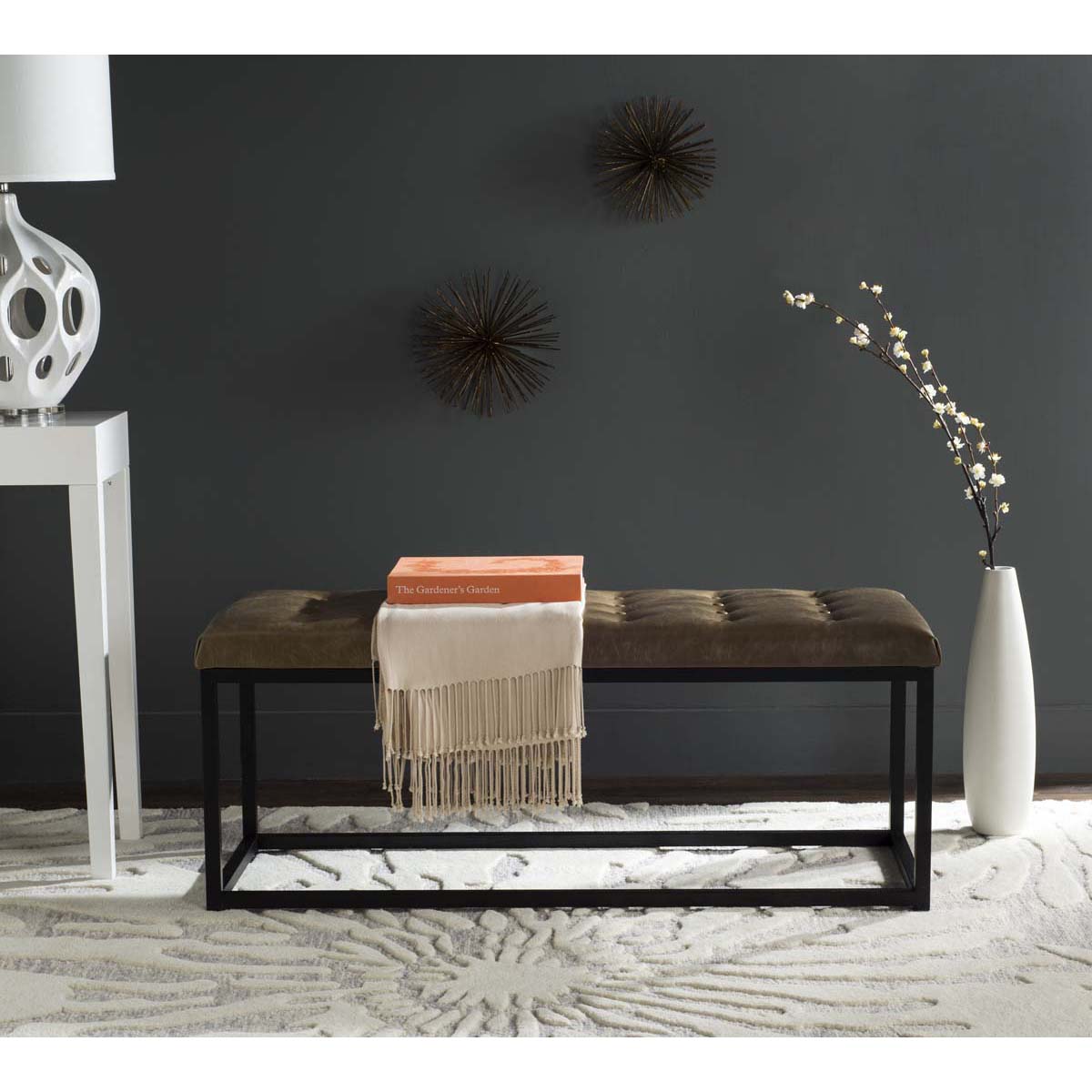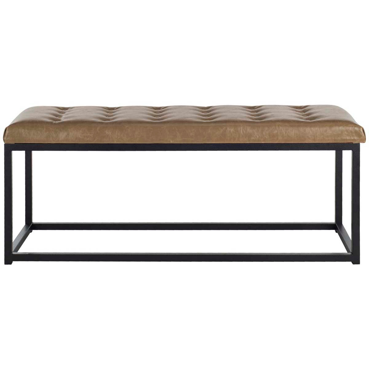 Graphic lines impart a designer look to the viewing bench, here with tan PU leather tufted upholstery and black Parsons style legs. Universal in appeal, it adapts to industrial chic, contemporary or transitional spaces, from entry hall to the bedroom.