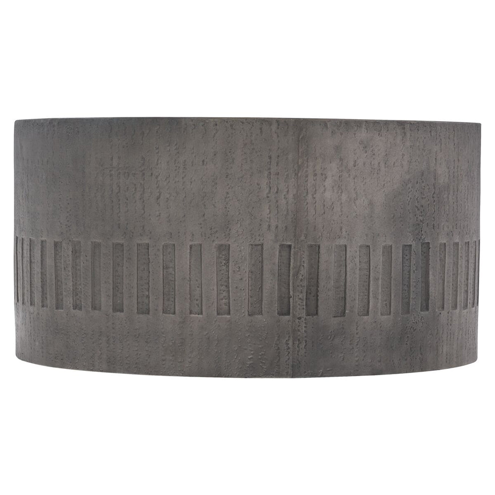 Crafted from textured, patterned concrete, this down-to-earth cocktail table adds an eclectic touch to an outdoor space.