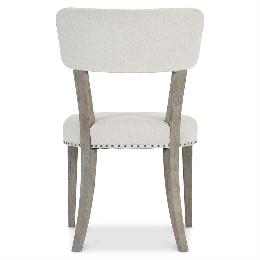 There are traditional details in the Albion side chair, with the wood frame, nailhead trim, and upholstered seat and back. But the sleeker tapered legs and the open back styling take this familiar style into a new direction for a more current outlook. The Pewter finish and wire-brushed white oak put the finishing touches on a gorgeously modern rustic form.