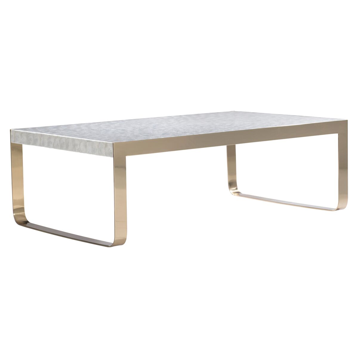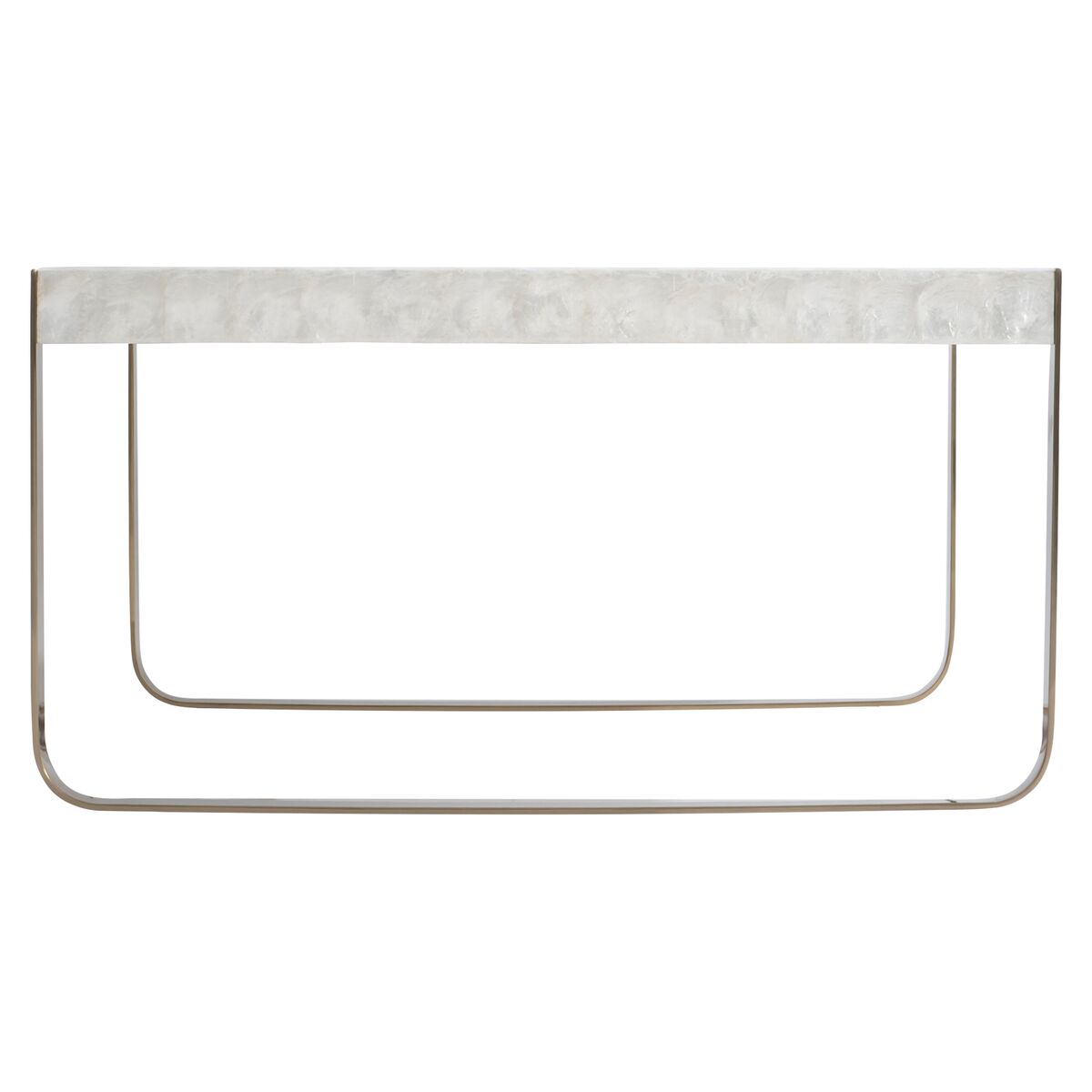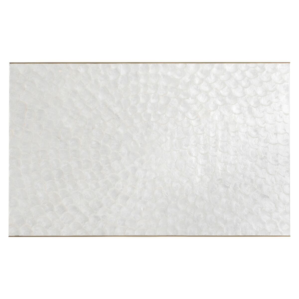 Cocktail Table With Top And Sides Of Top Covered In Capiz Shell. Brass- Plated Stainess Steel Base. Adjustable Glides.