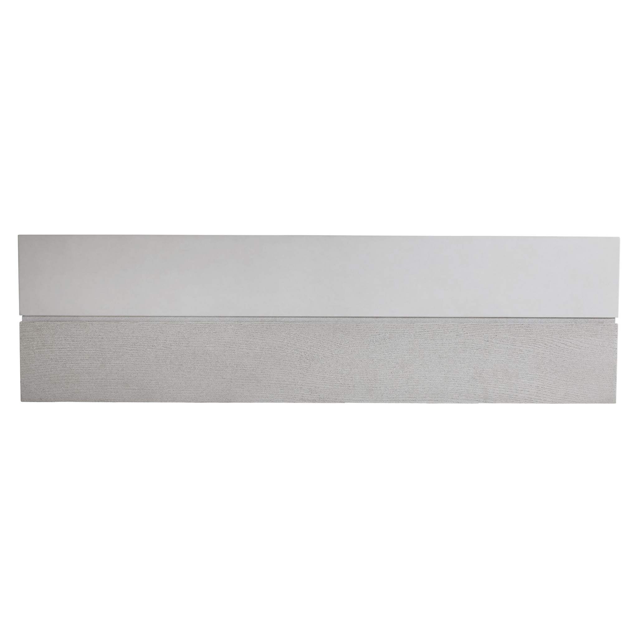 Pitted faux stone in Adobe finish on top section, quartered ash wood reveal and bottom section in Sandblasted White finish