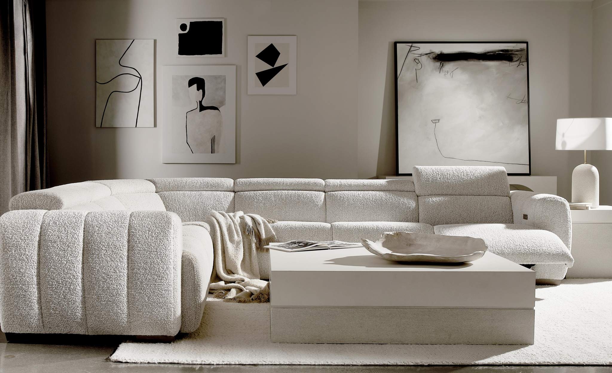 A daringly sized cocktail table creates chic sophistication in simple lines.