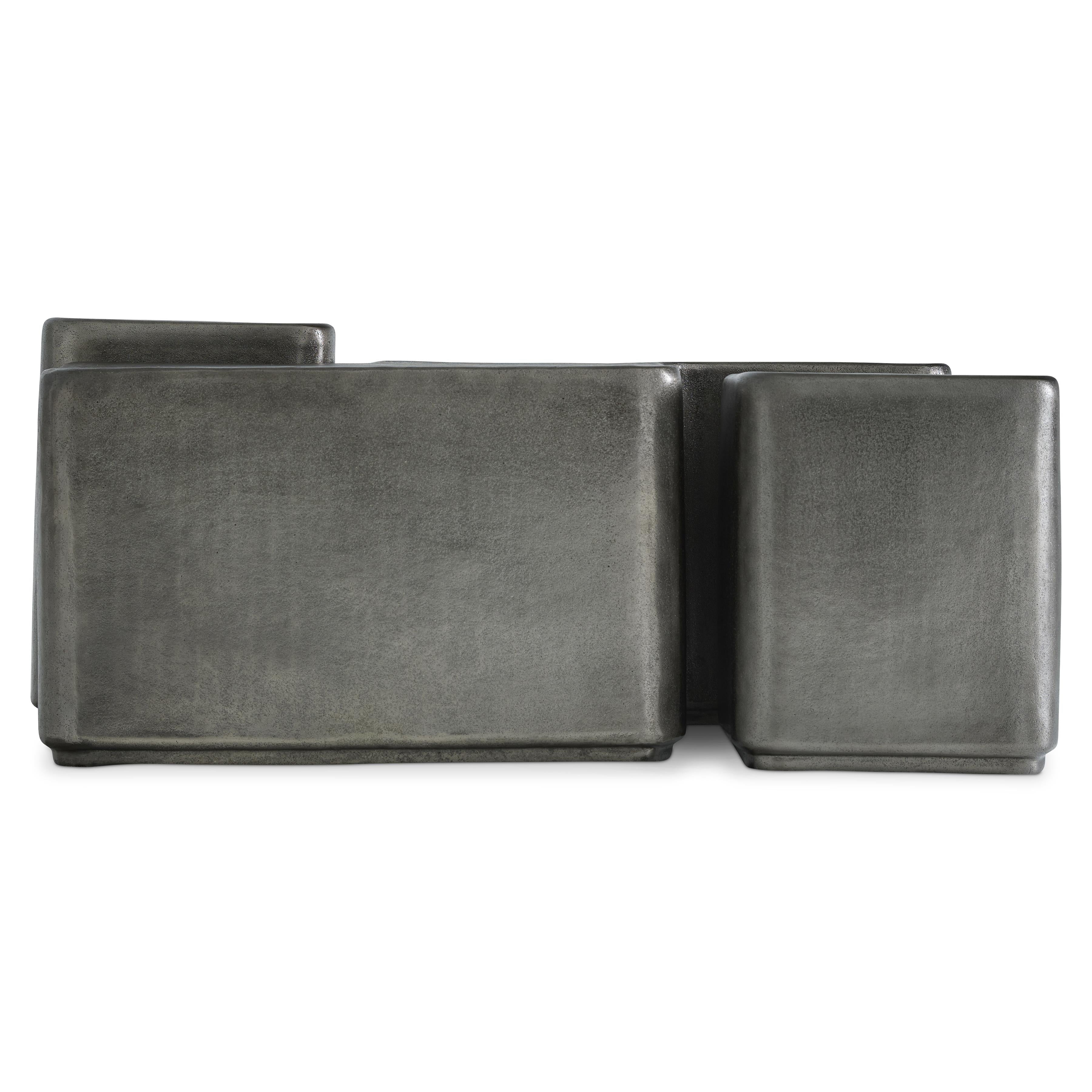 Part of bunching cocktail table, comprised of cocktail table and two accent tables, Cast aluminum in Graphite finish