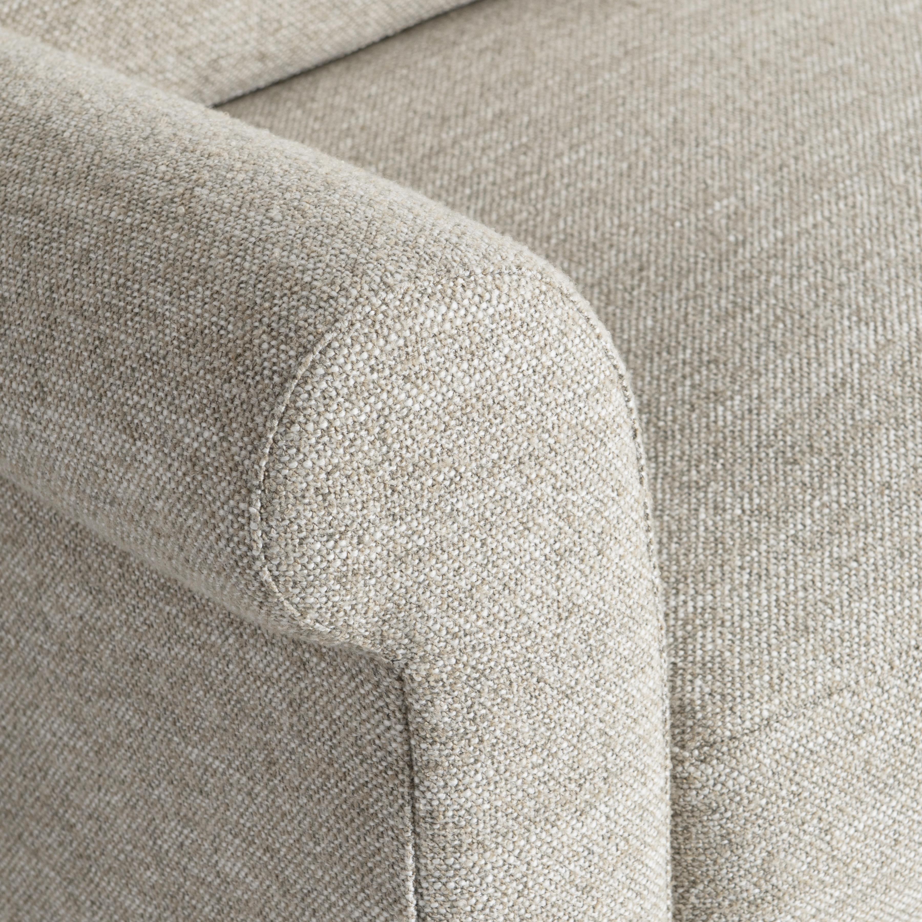 A traditional rolled arm finds a new freedom of expression with a gentle scroll on the Keirnan sofa. The arm sweeps up to a softly sloping back that offers style and comfort. Knife-edge cushions, two fabric throw pillows and two shearling throw pillows complete the plush design for a modern take on a classic look.