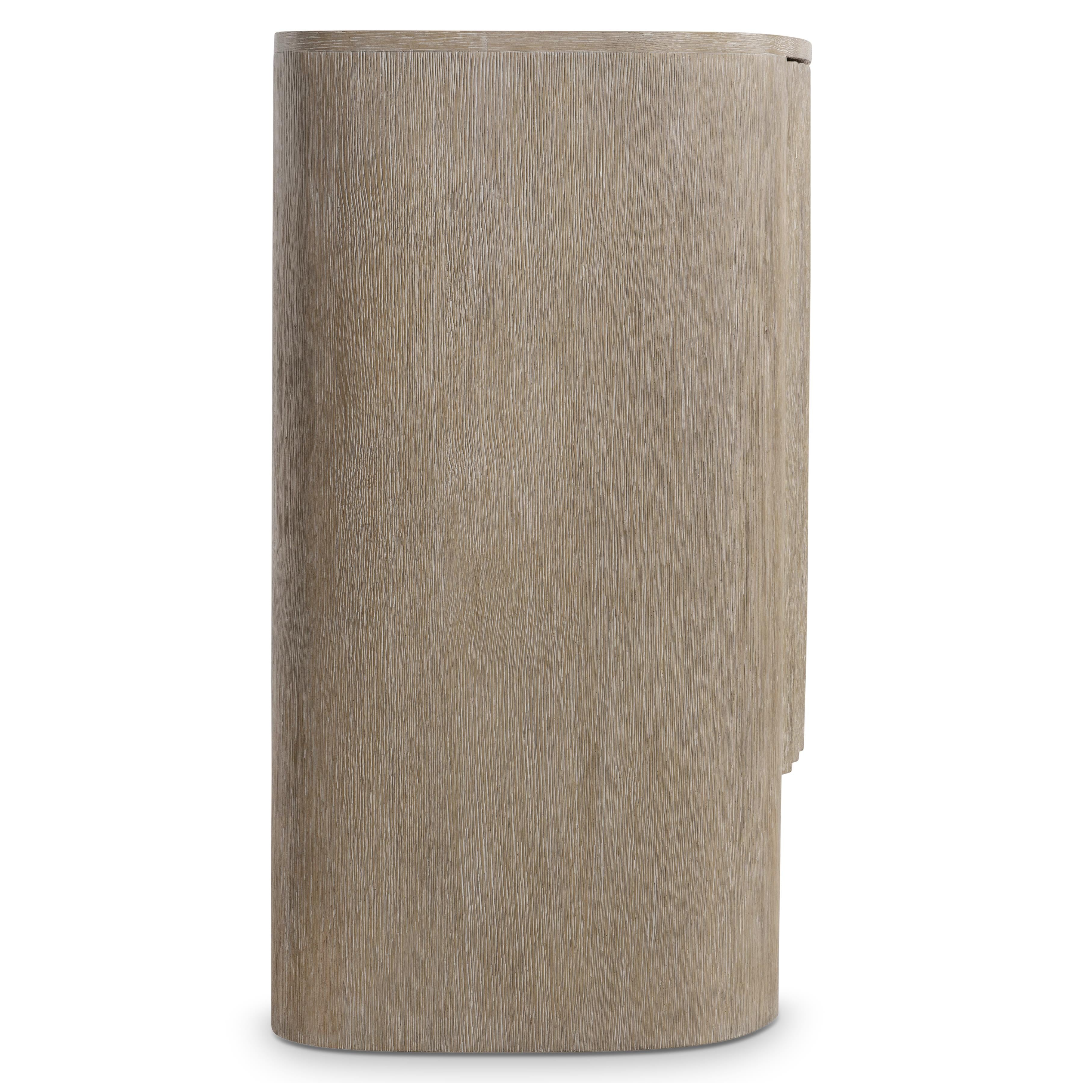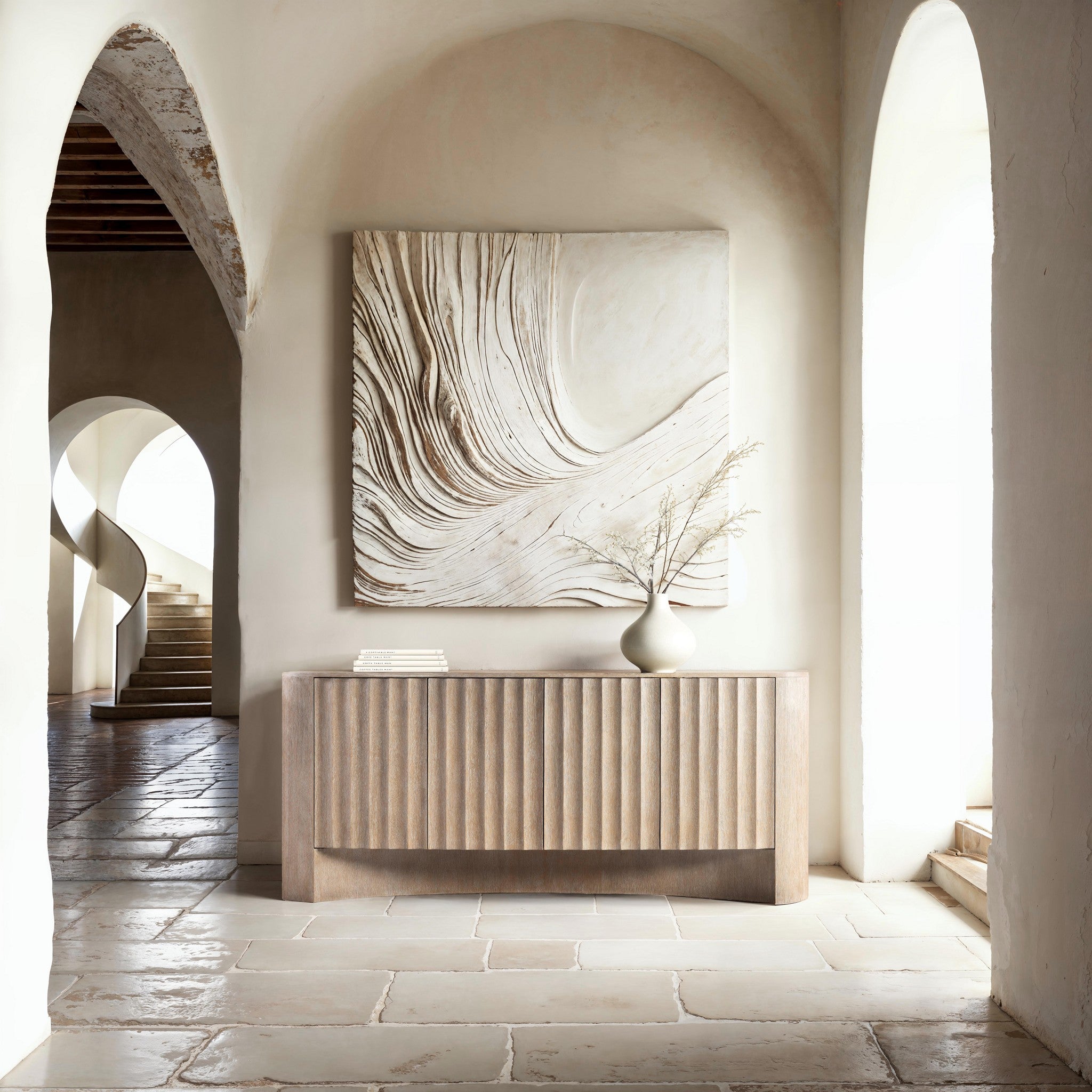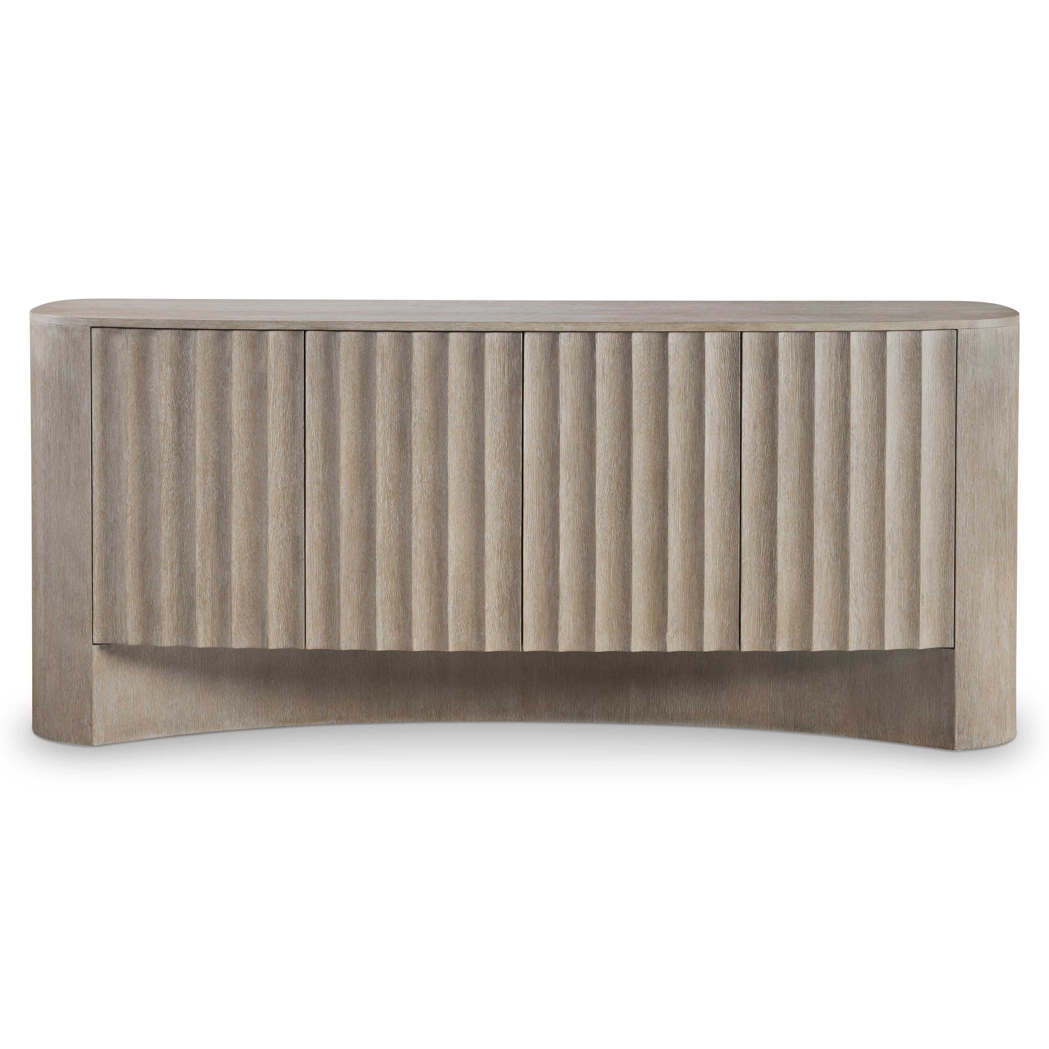 Fluting and curved lines create a mesmerizing design for this entertainment credenza.