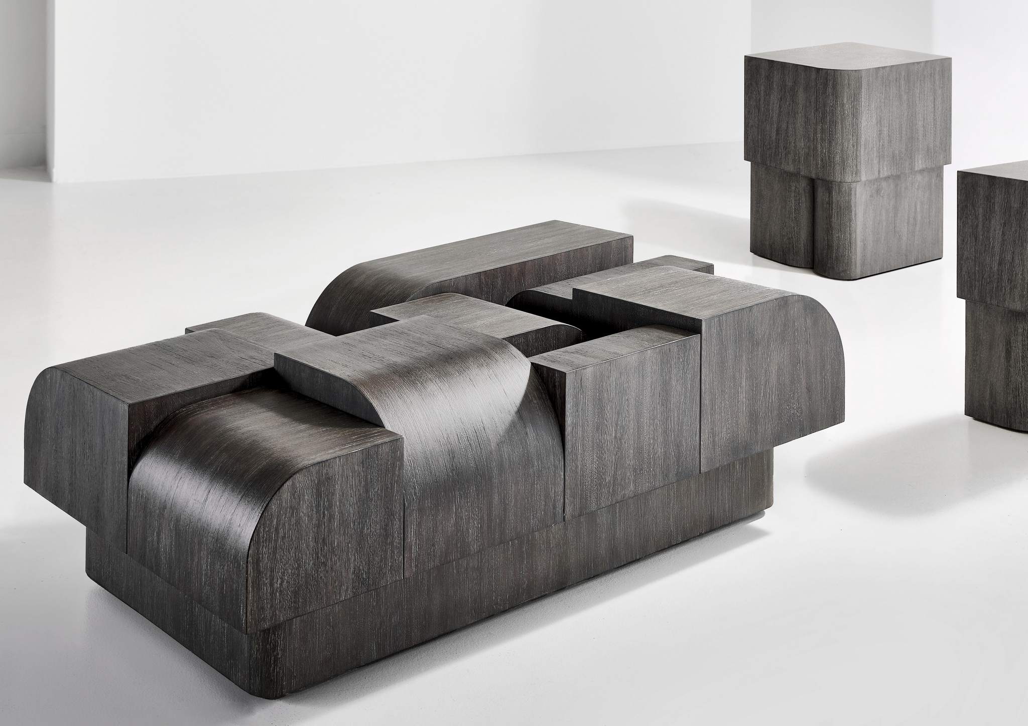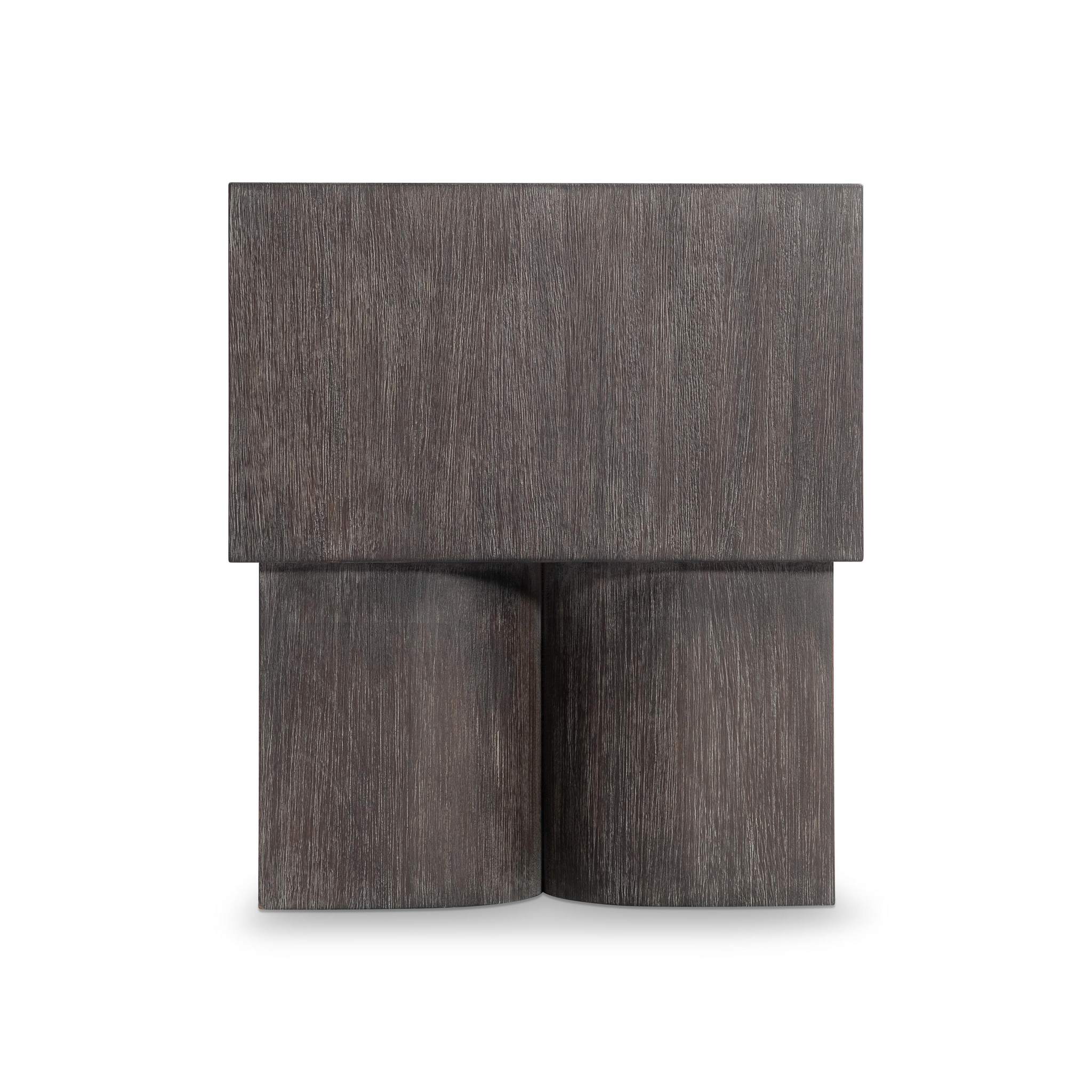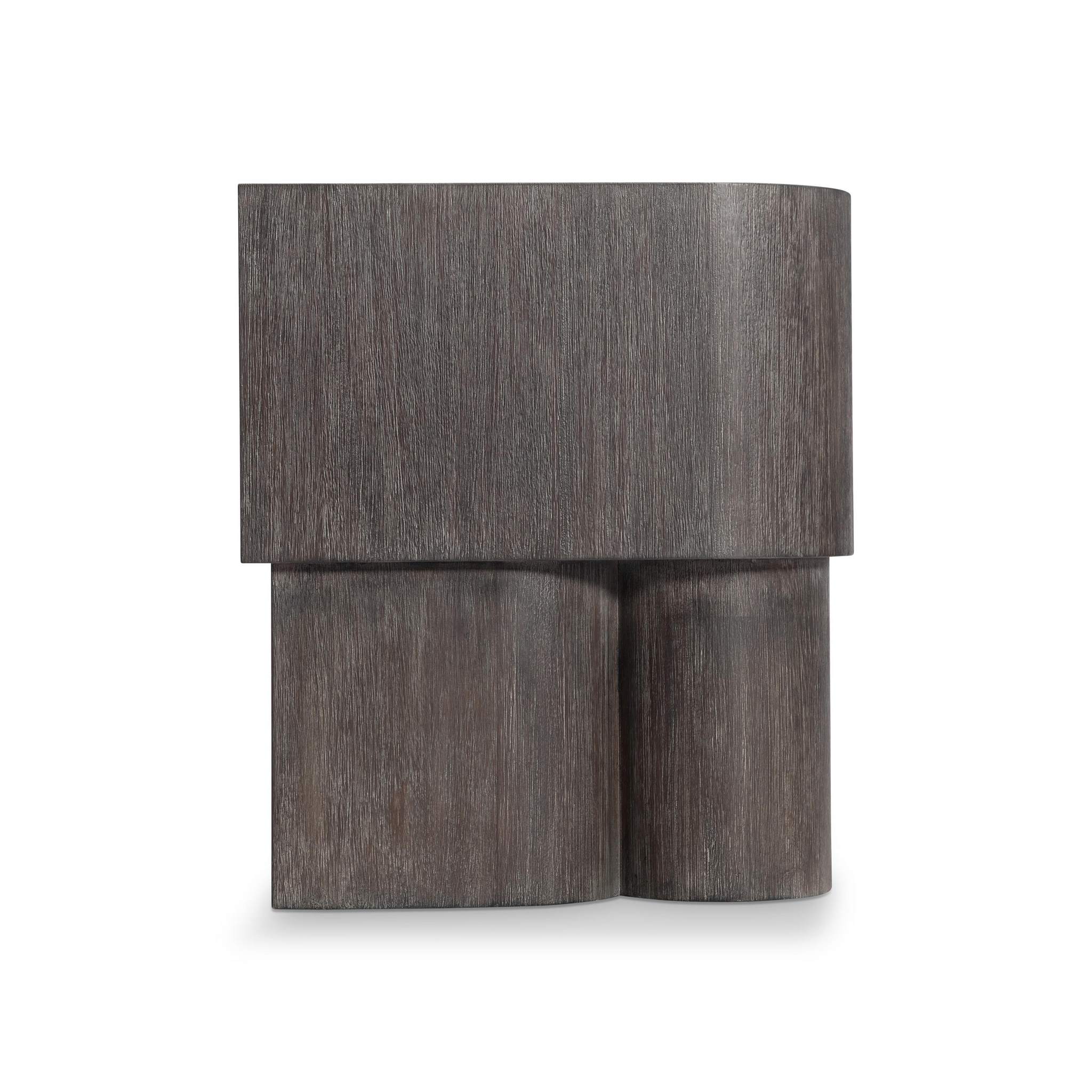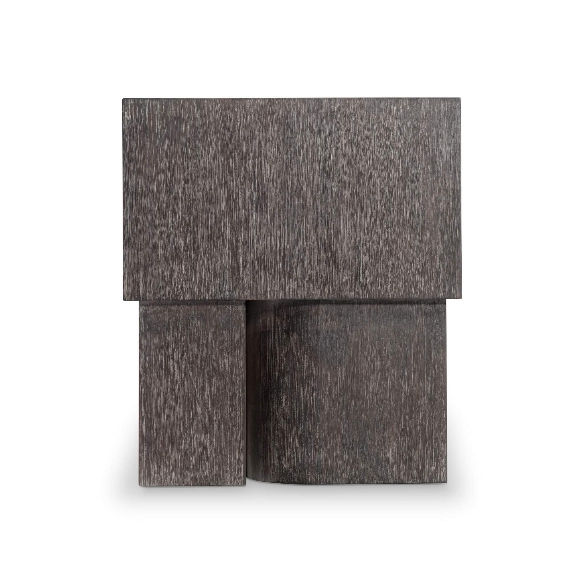 A deep Bracken finish allows the natural wood grain to take the spotlight on the Nonza side table. A square block top has one rounded side and rests on dimensional base of curves and straight lines. Crafted of mahogany, it's a shapely take on organic design.