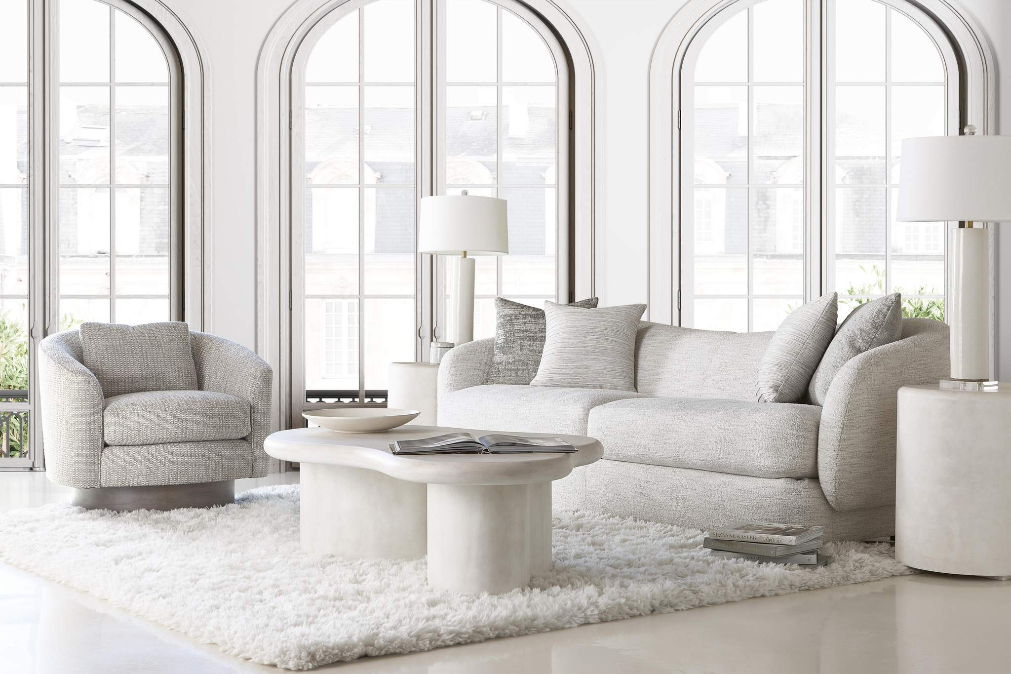 The modern organic style of the Nova side table has rounded edges and curves that offer an unstructured design. The light Vellum finish complements the kidney-shaped contours.