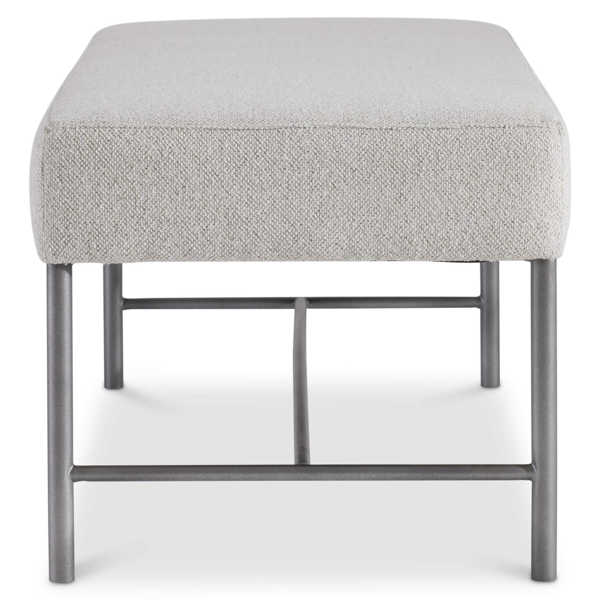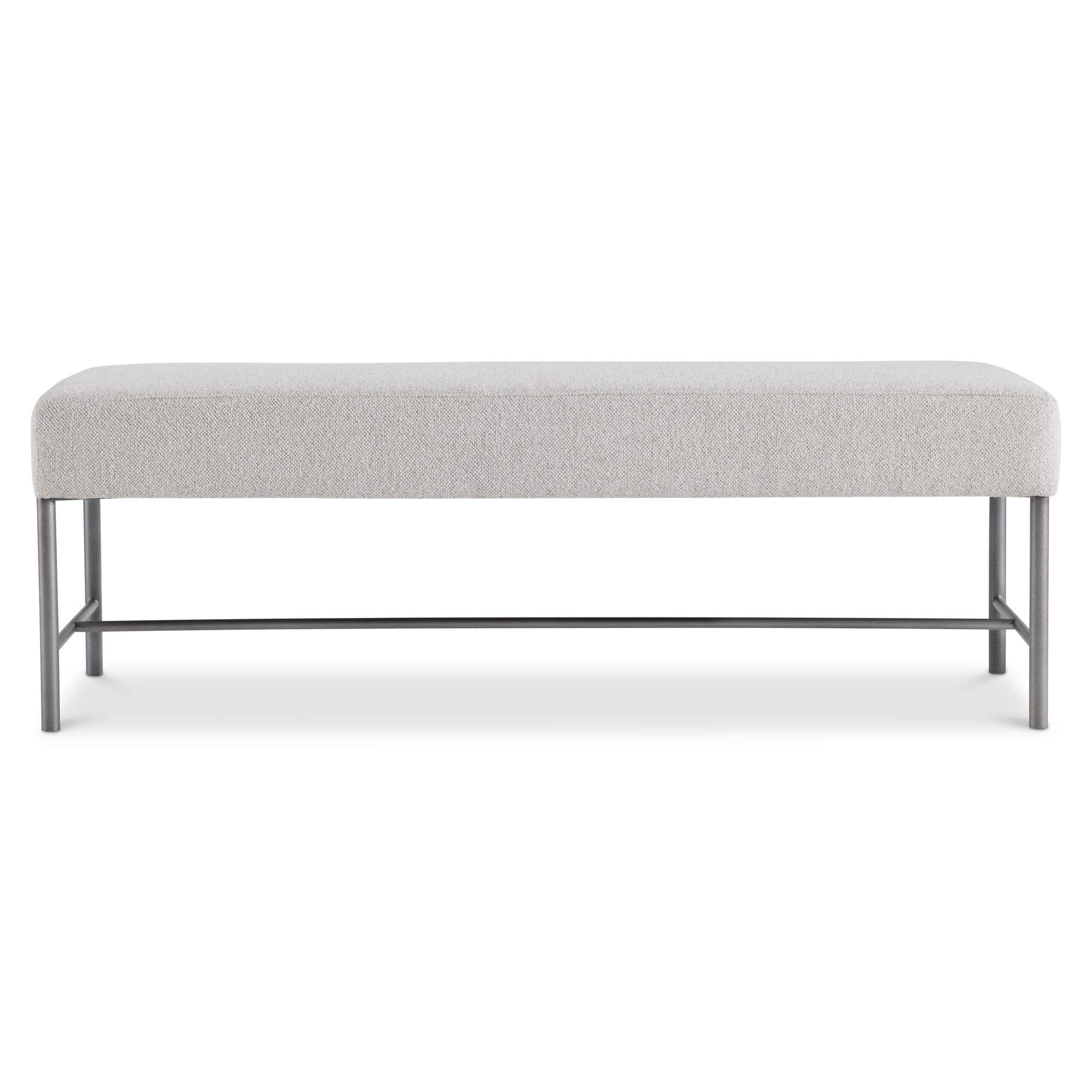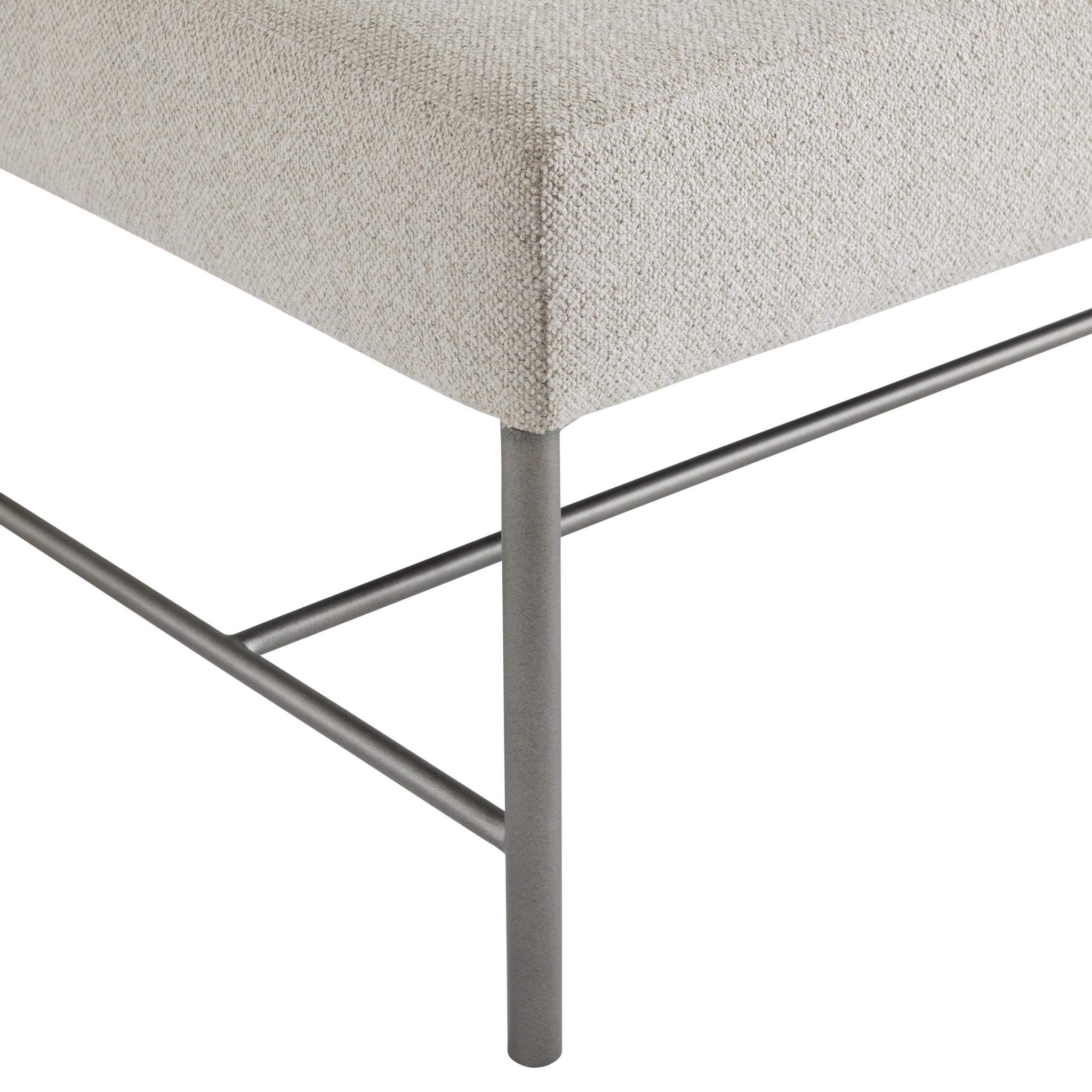 A simple metal frame contrasts beautifully with this bench's lushly upholstered seat.