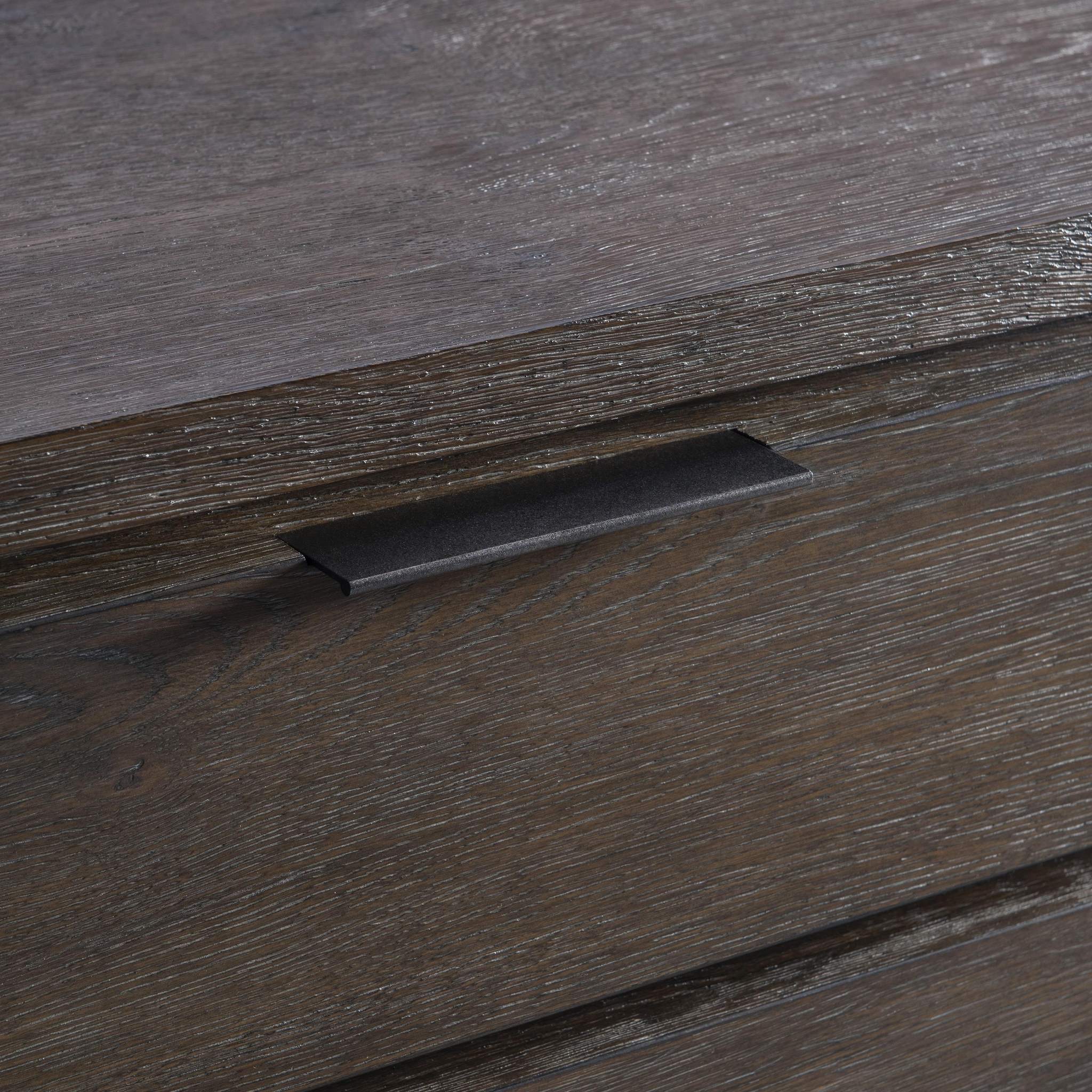 The Outline buffet defines a new look for modern minimalism. Three drawers and three doors in Cassel finish have a dimensional look against a recessed backdrop, highlighted with textured metal pulls. Corners are rounded, and lines are streamlined for a seamless sophisticated look.