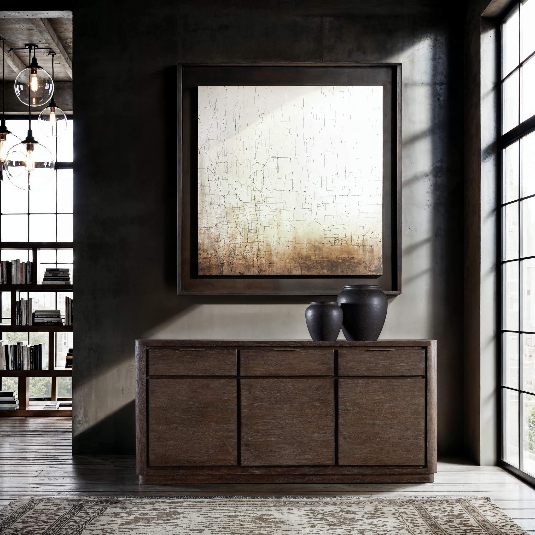 This buffet offers a streamlined style defined by recessed detailing.