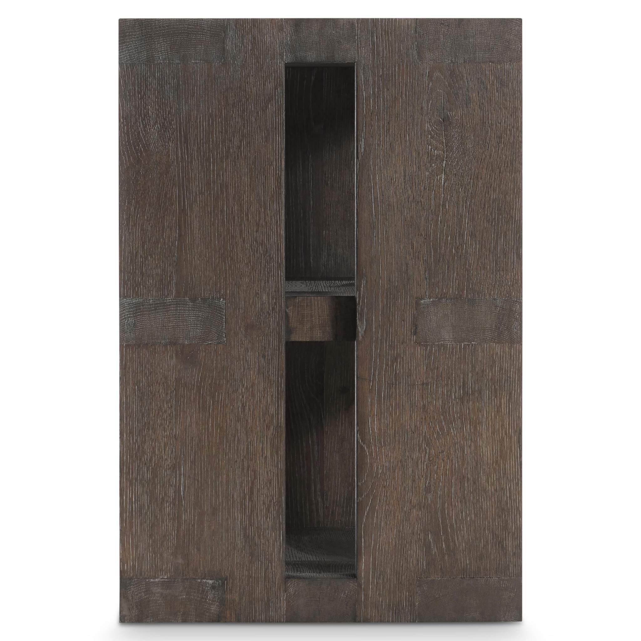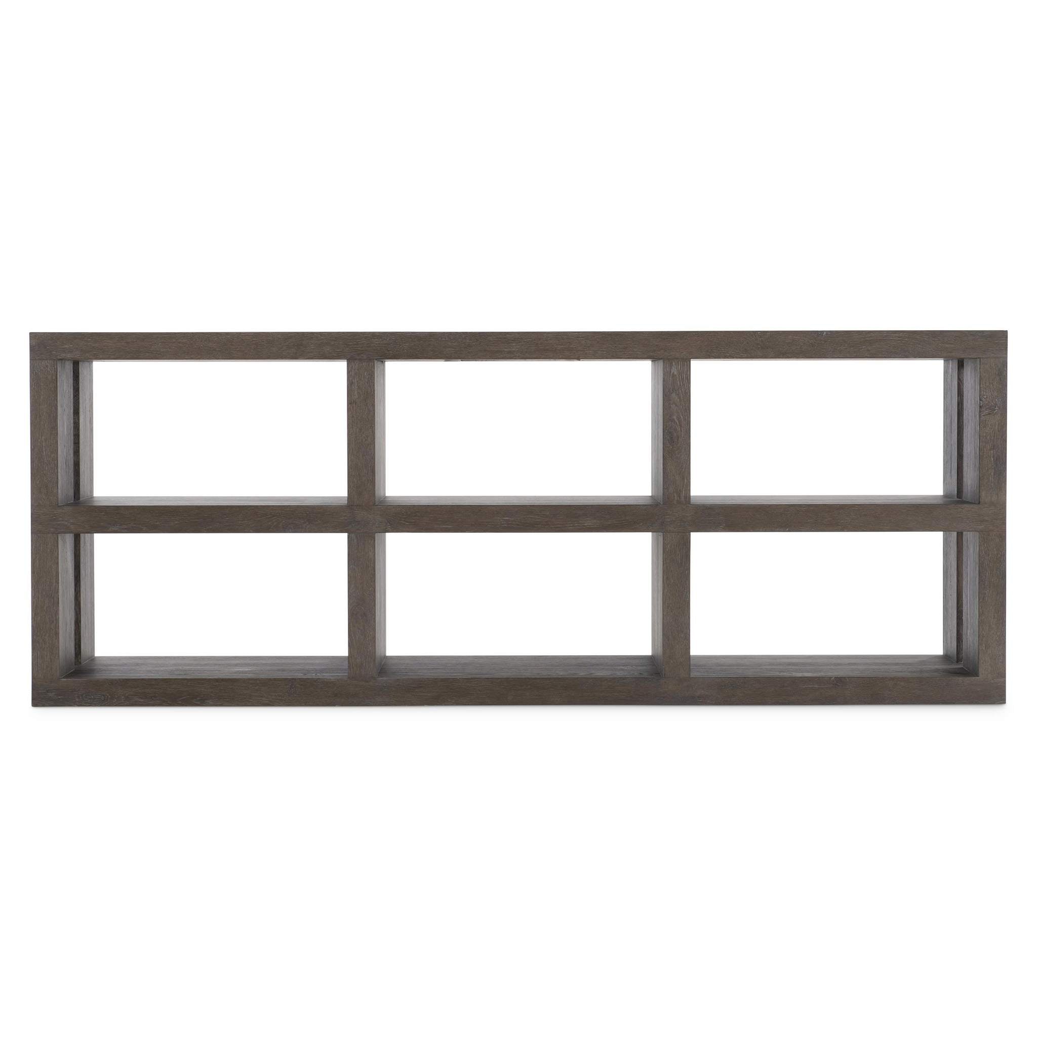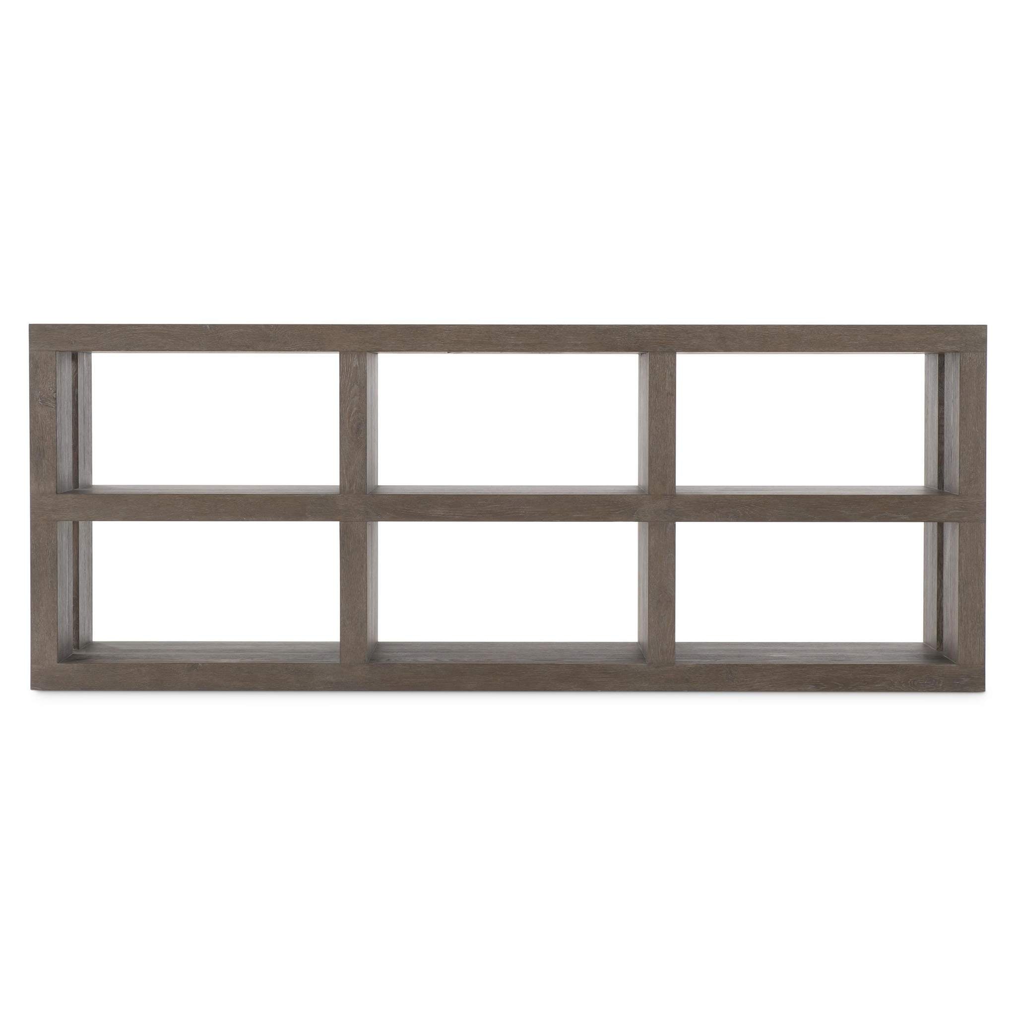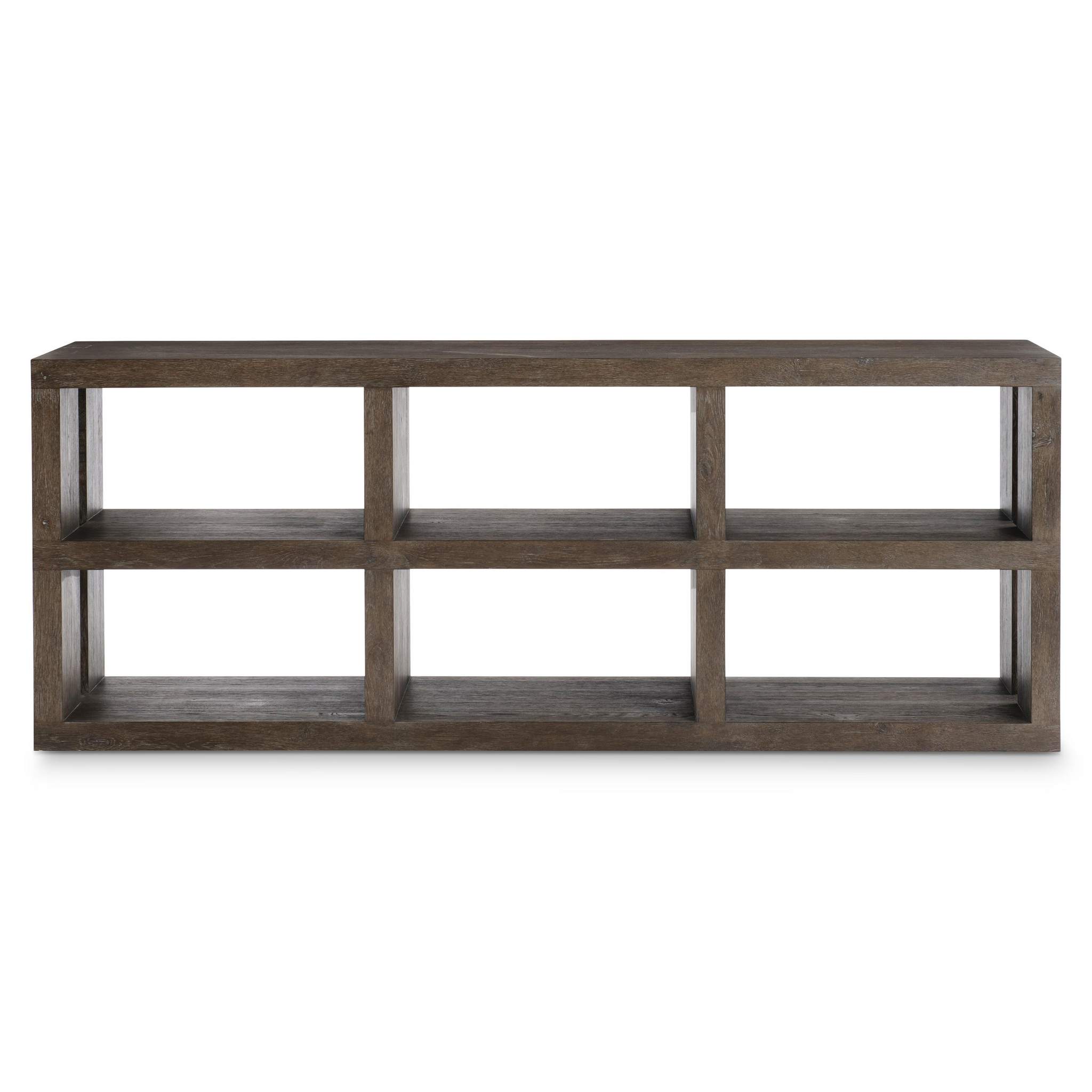 Inspired by the architectural style of Frank Lloyd Wright, the Outline console table highlights the bold forms and simple lines of the Arts and Crafts movement. Deeply textured wood finished in Cassel is fashioned into geometric shapes that showcase craftsmanship. Rectilinear panels bisect with open sections at each end.