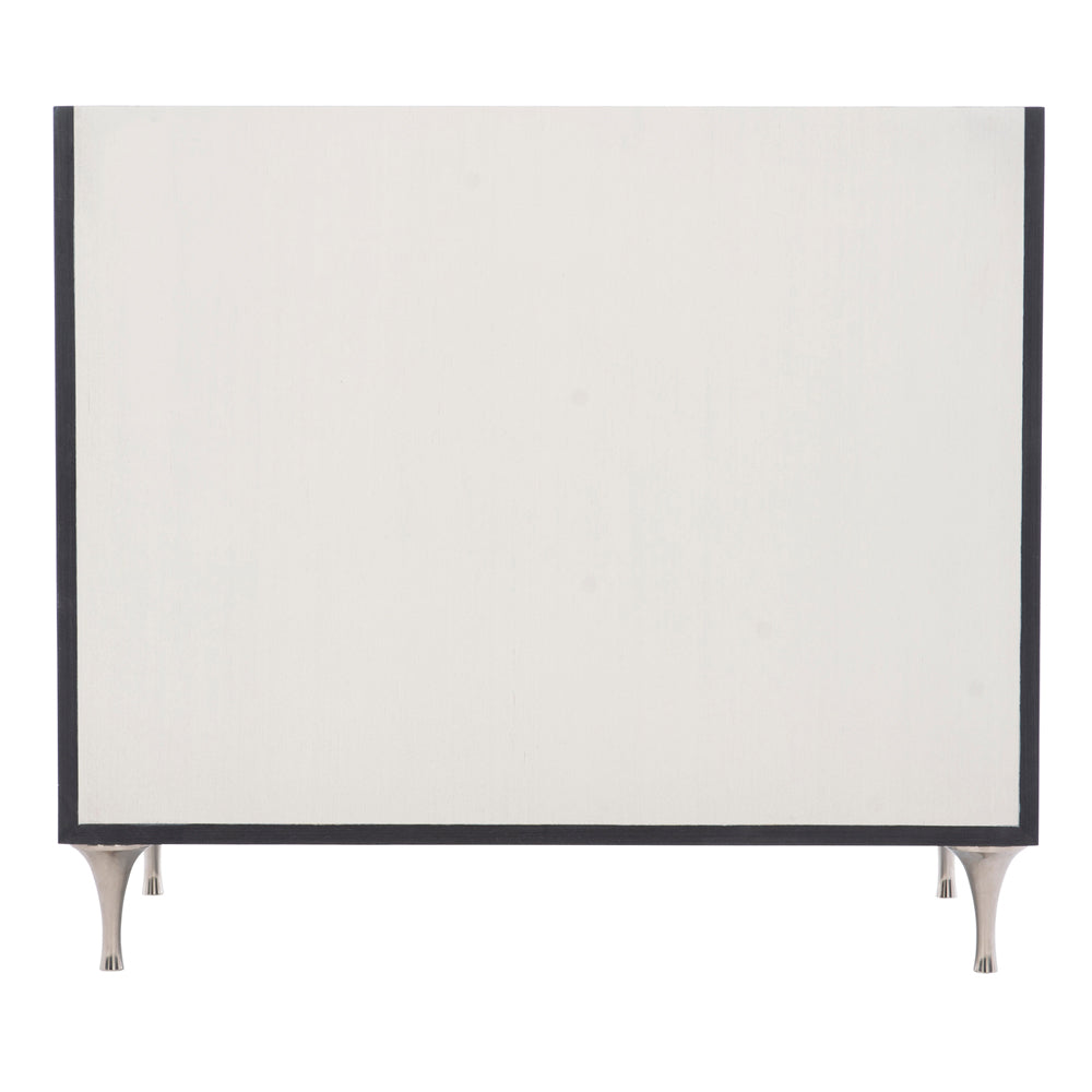 Two Tone Finish, Case In Onyx Finish, Top & Drawers In Eggshell Finish, Top Has Gallery Rail Around Sides W, Open Front, Two Soft Closing Drawers, Bottom Drawer Open Compartment, Polished Stainless Steel Feet, Adjustable Glides