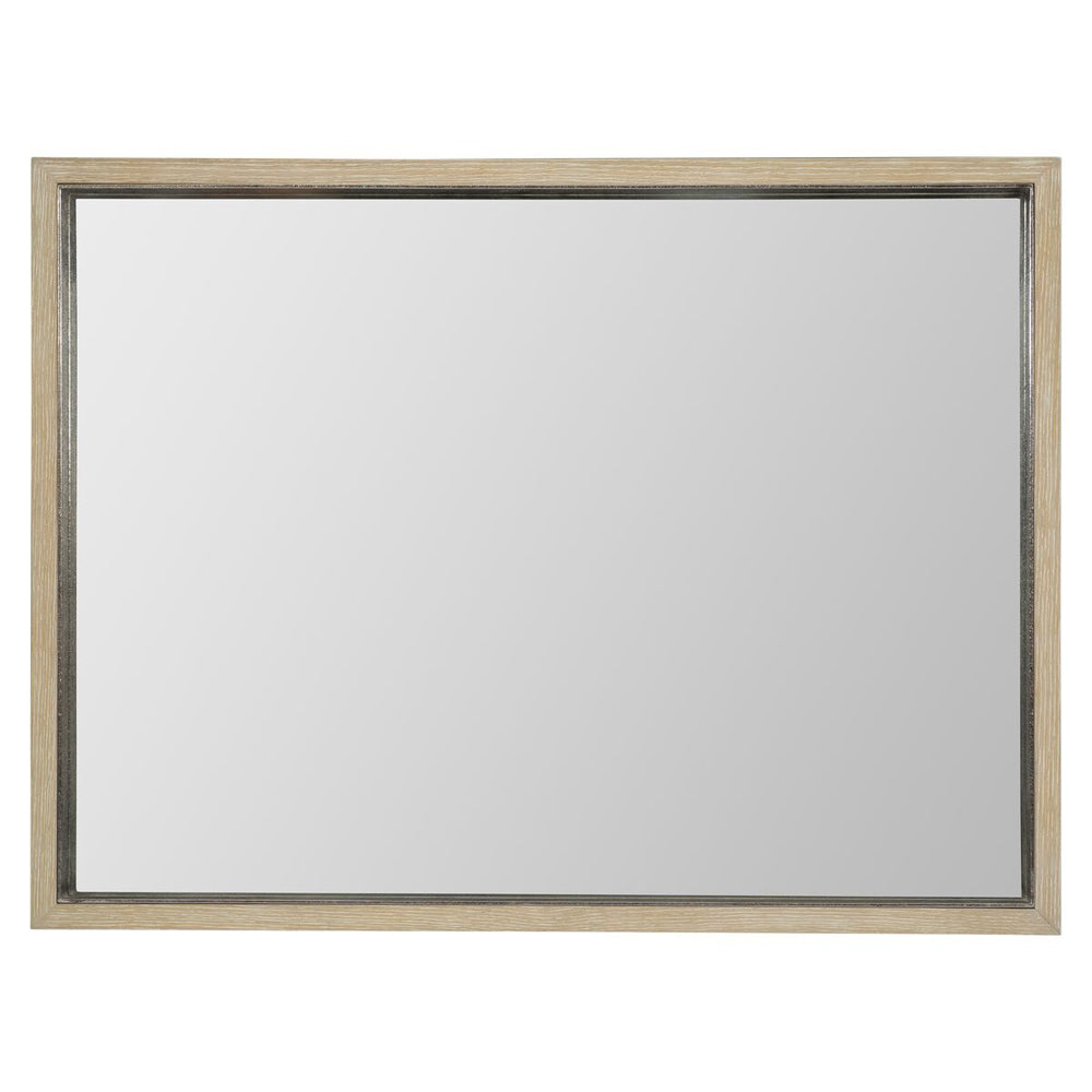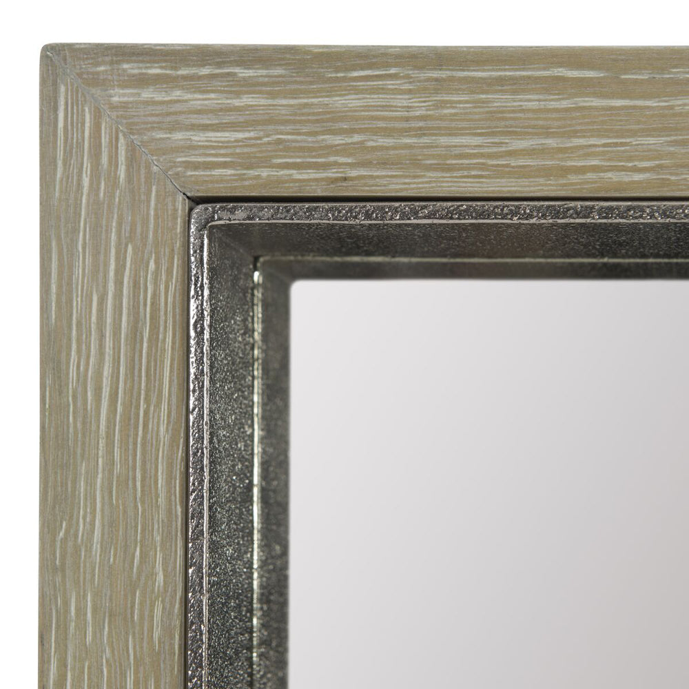 A mix of materials crafts a distinctive look in this rectangular mirror. The Solaria mirror is crafted with an exterior wood frame in the Dune finish and an inset cast aluminum frame in Shiny Nickel. The mix of materials creates a distictive design that can be hung horizontally or vertically.