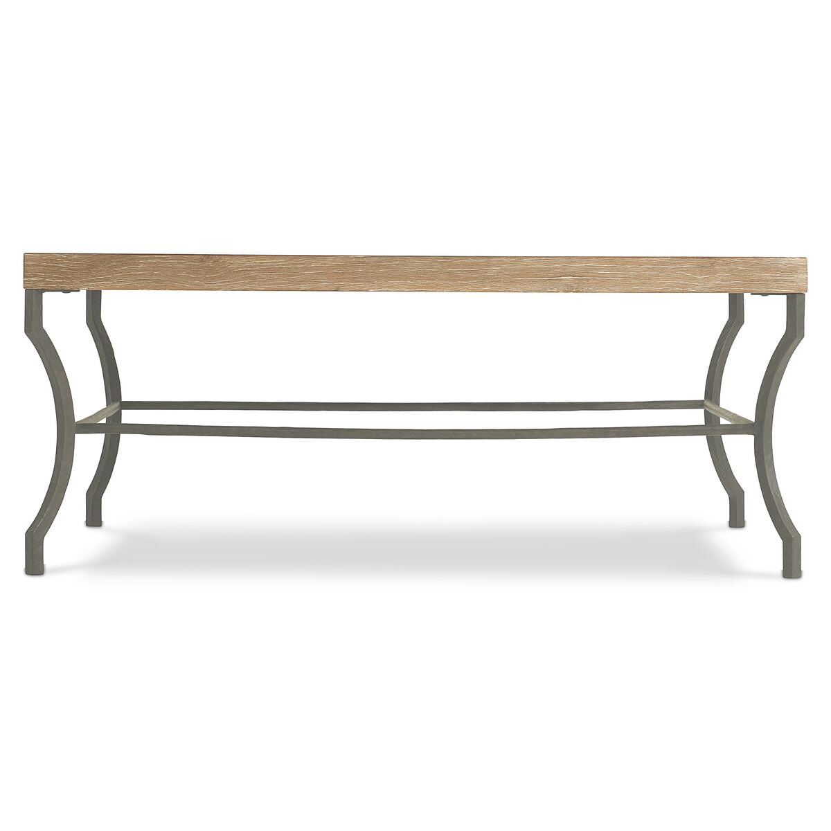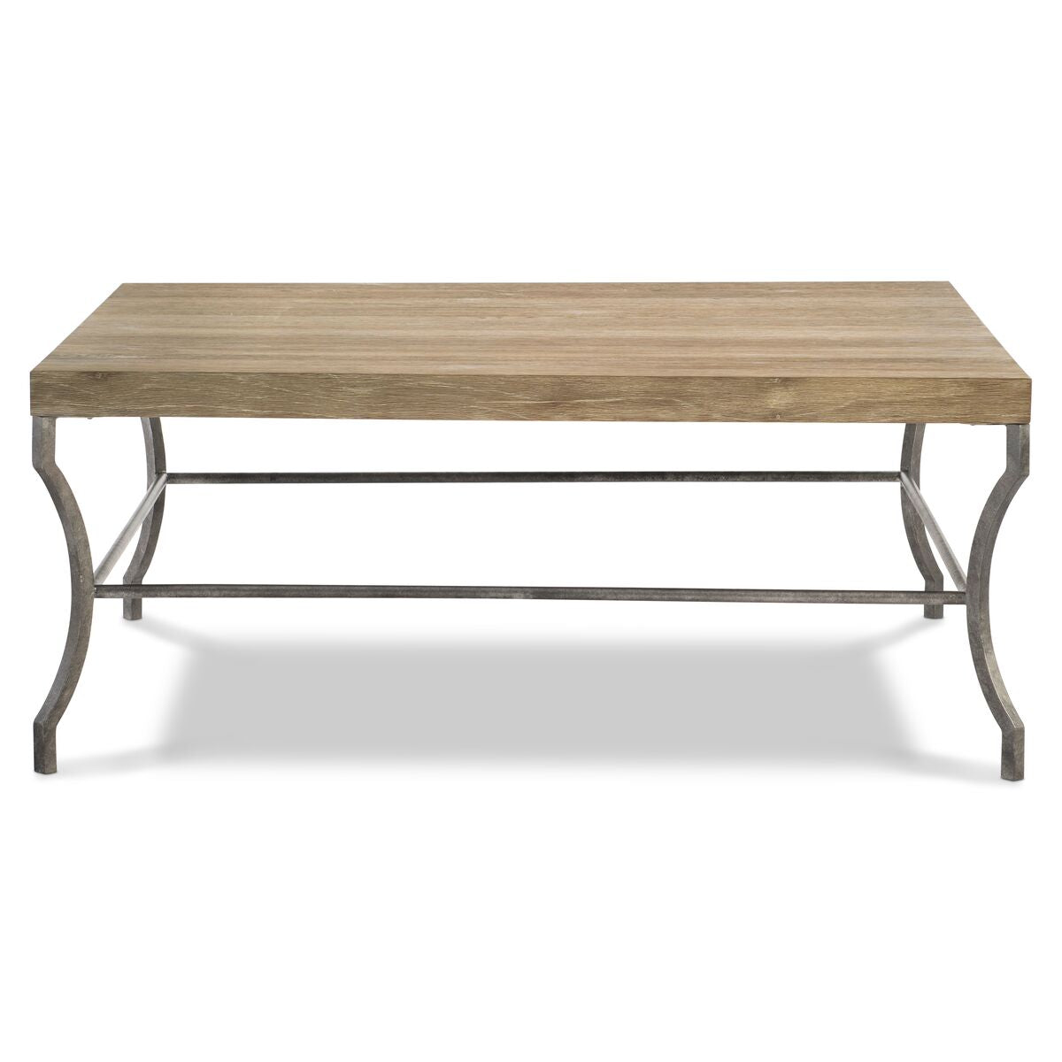 Square Cocktail Table With Wirebrushed Oak Top In Aurum Finish. Textured Steel Base And Stretcher In Barlow Finish. Adjustable Glides.