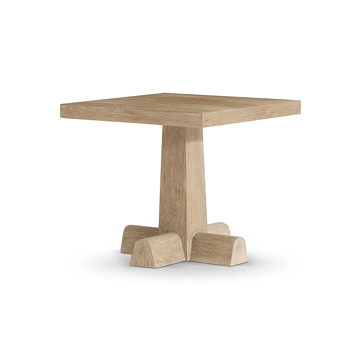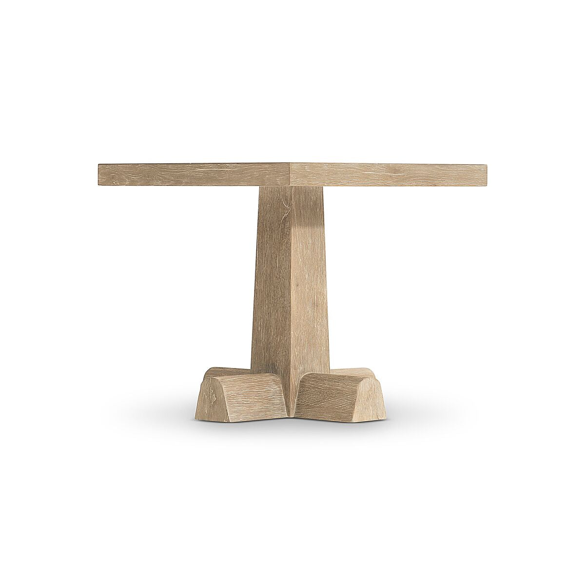 Wirebrushed Oak Side Table In Aurum Finish. Tapered Pedestal Base. Adjustable Glides.