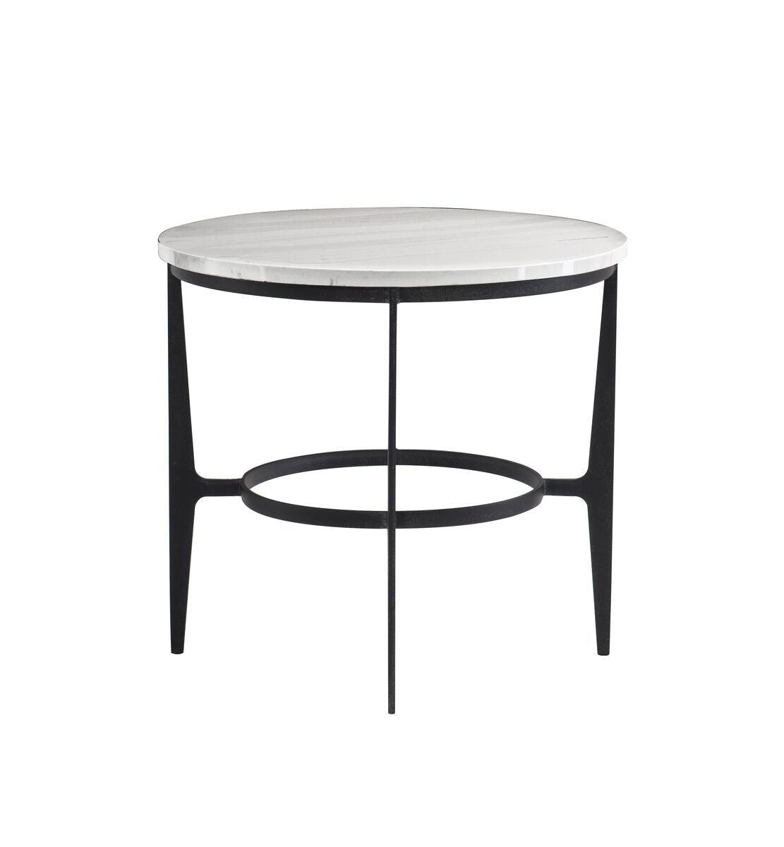 Bernhardt Occasional offers a range of upscale designs for luxe living spaces. Casual yet sophisticated, the Avondale end table pairs a sleek steel base with a faux marble top. The blackened steel contrasts with the smooth faux marble, while the stretchers form a circle echoing the round top. This piece offers elegant contemporary style with a hint of industrial chic.