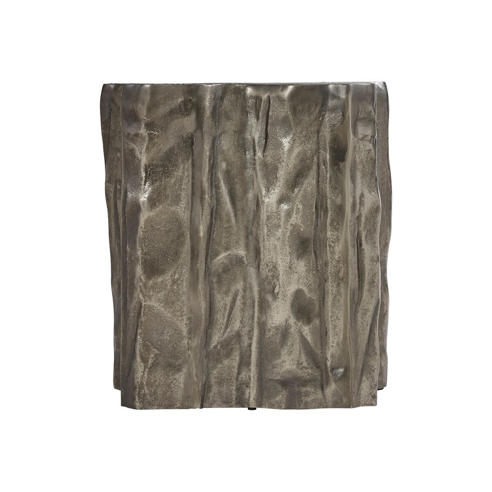 A faux bois design offers a uniquely organic look in this outdoor accent table.