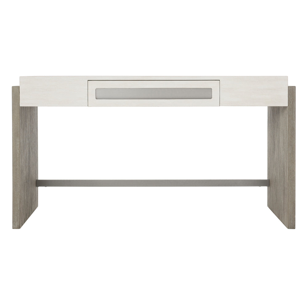 Two-Tone Finish - Drawer Box In Linen Finish And End Panels In Light Shale Finish. One Soft-Closing Drawer With Hand-Pull With Inset Brushed Stainless Steel Plate. Brushed Stainless Steel Stretcher. Adjustable Glides.