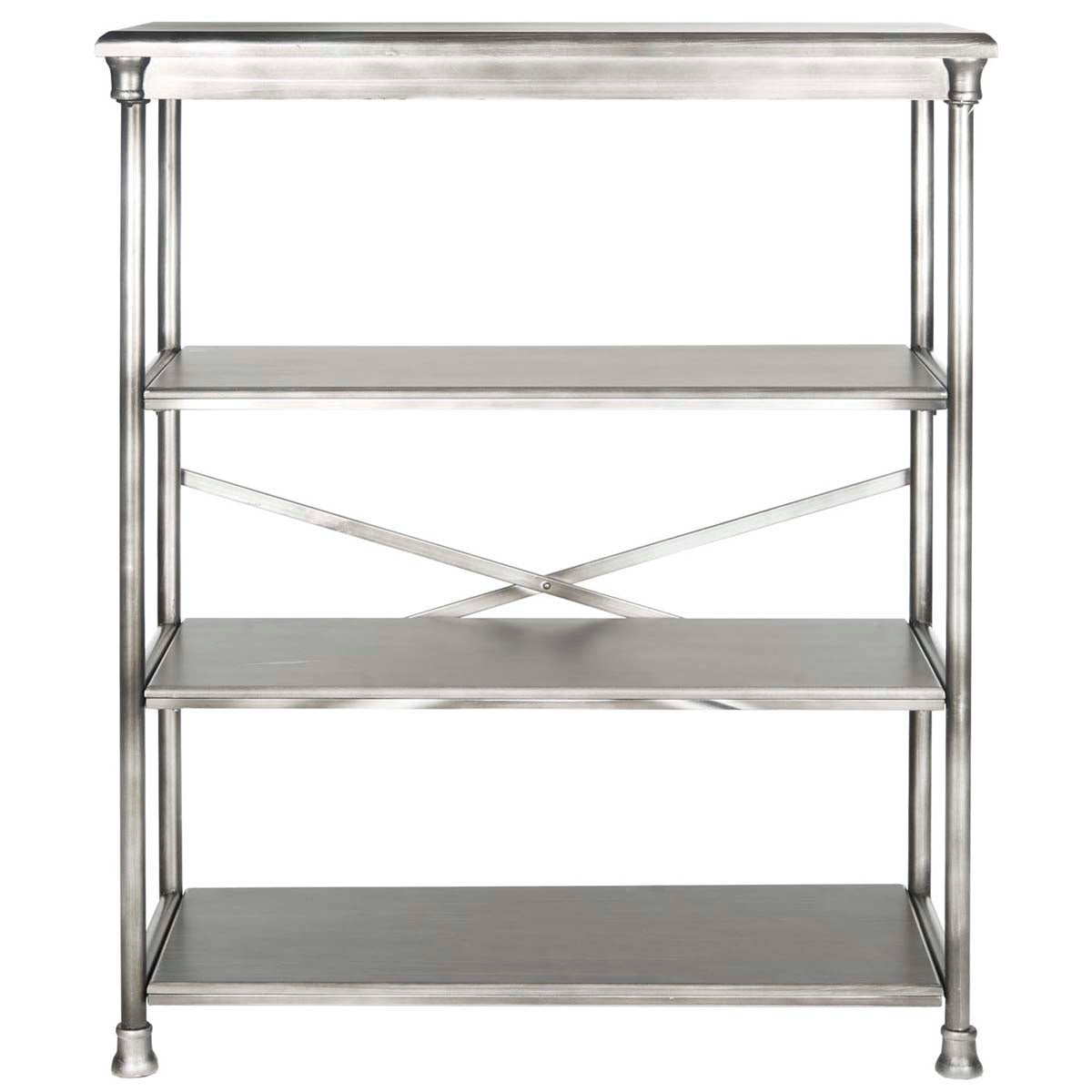 Emblematic of versatile transitional style, the Jamison Large Bookcase combines simplicity with elegance. A sleek iron frame accentuated by a classic X brace and wooden shelves are all finished in fashion forward dark silver.