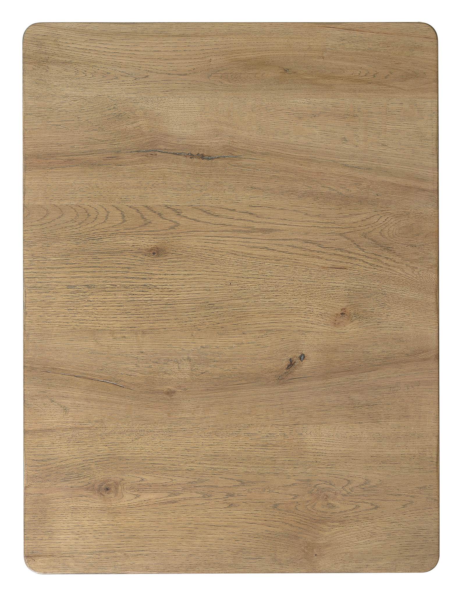 The four-piece Kalamazoo Home Office Collection evokes the look of furniture salvaged from workshops or industrial settings, featuring oak veneers in an aged finish that adds to the authenticity of each piece.