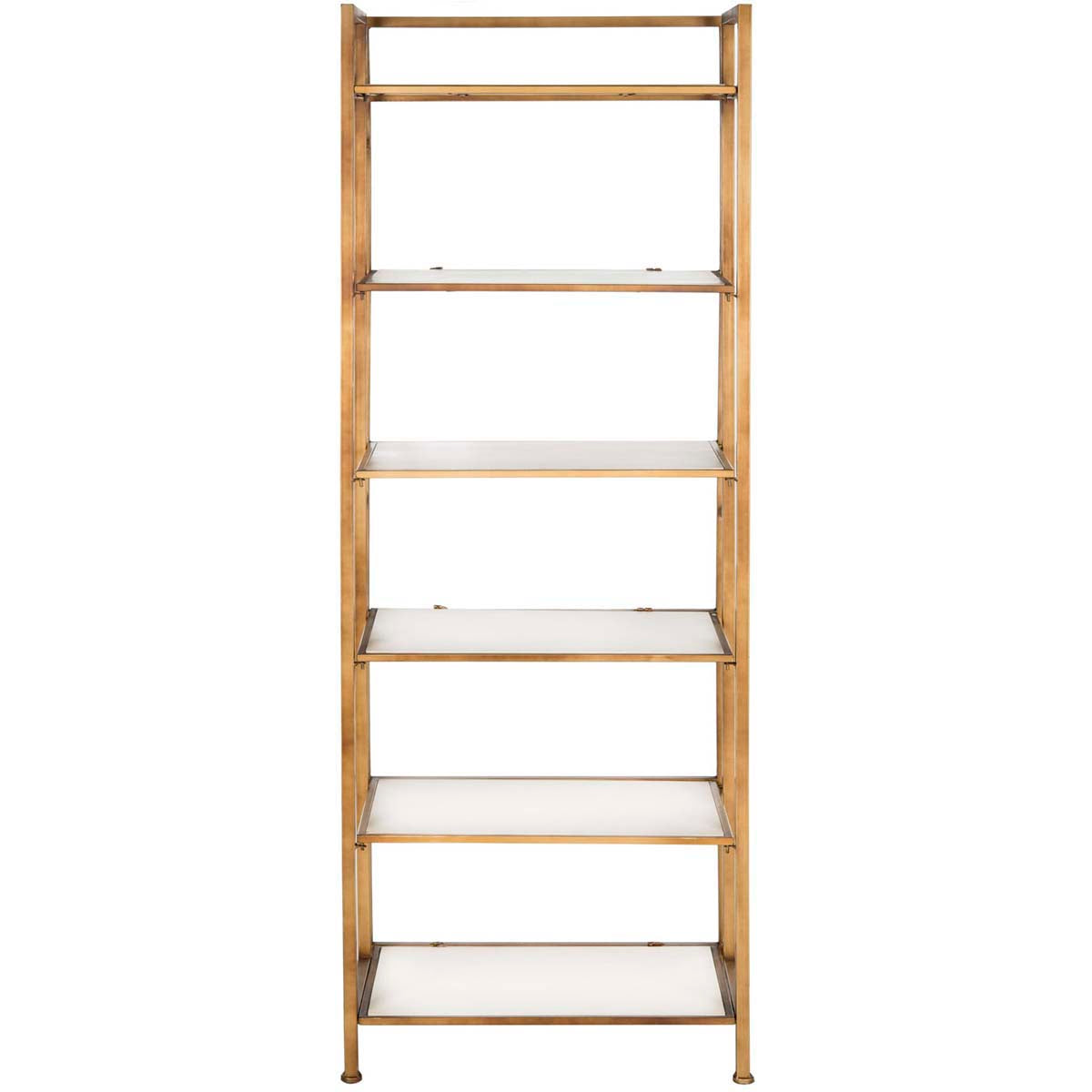 Both urban and contemporary, the Kimmy Etagere is a hard working yet elegant storage solution. Crafted of white wood shelves and gold finished iron frame, this well proportioned etagere functions as a bookcase or display piece.