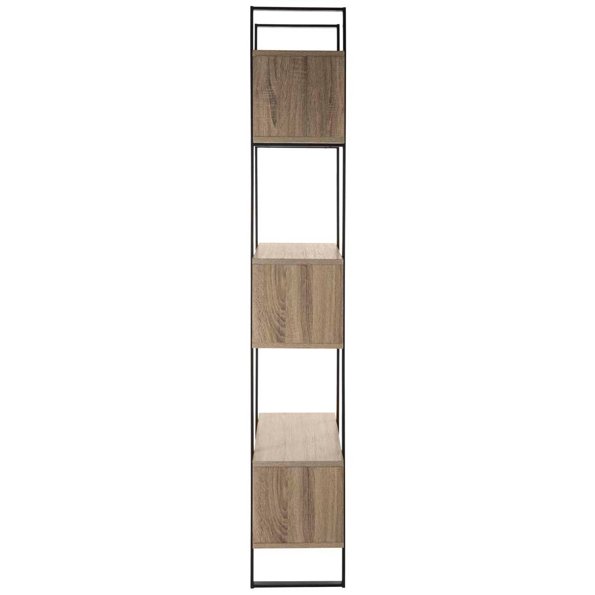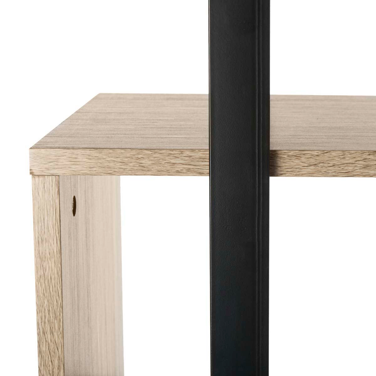 This artfully designed Mid Century Adhara Etag?re was inspired by Bauhaus creations. Crafted with smooth oak and black iron, Adhara's dynamic form makes it a stylish focal point in the living room as well as an instant display or storage solution.