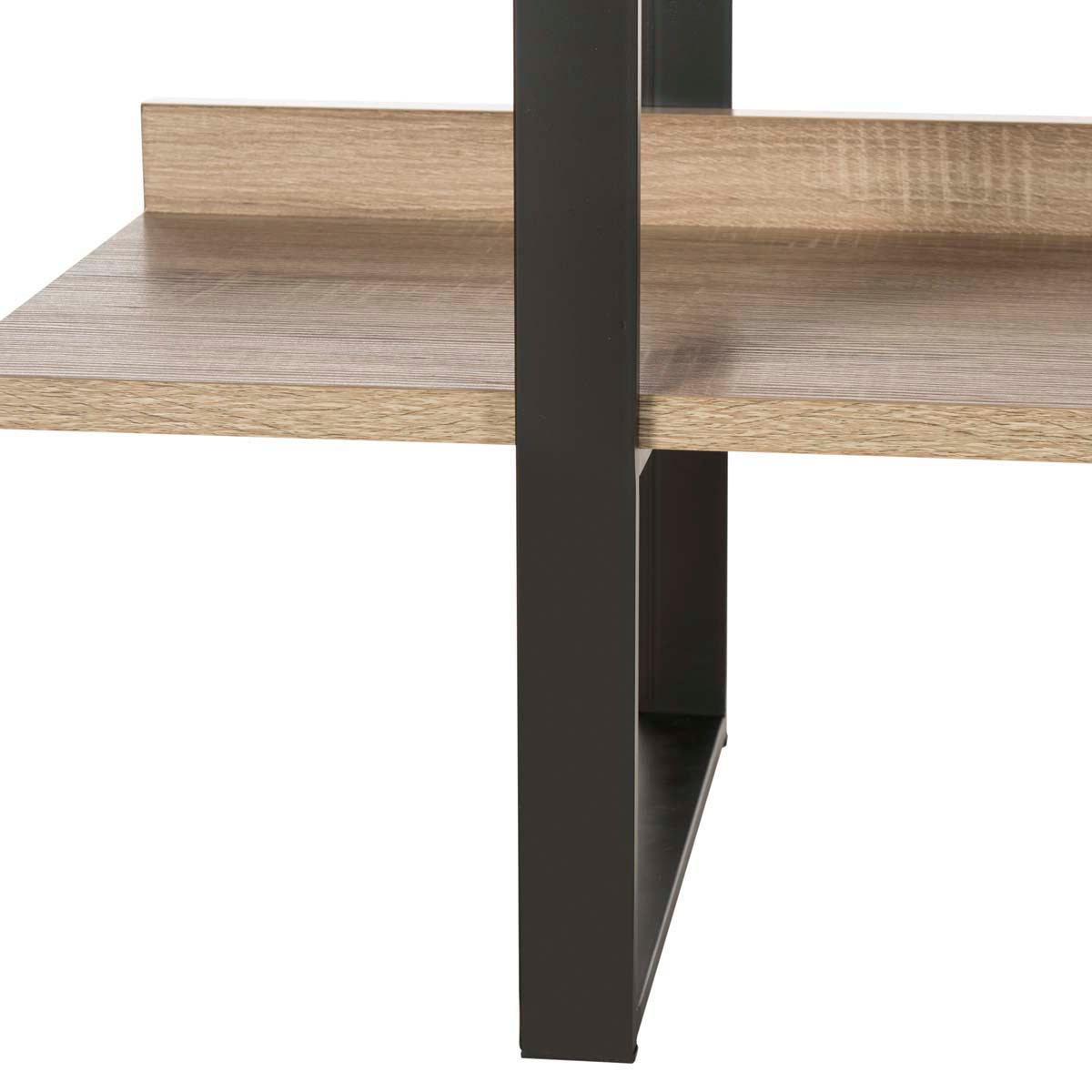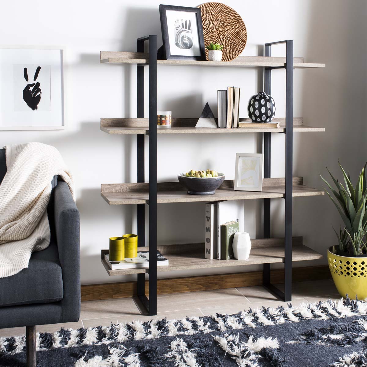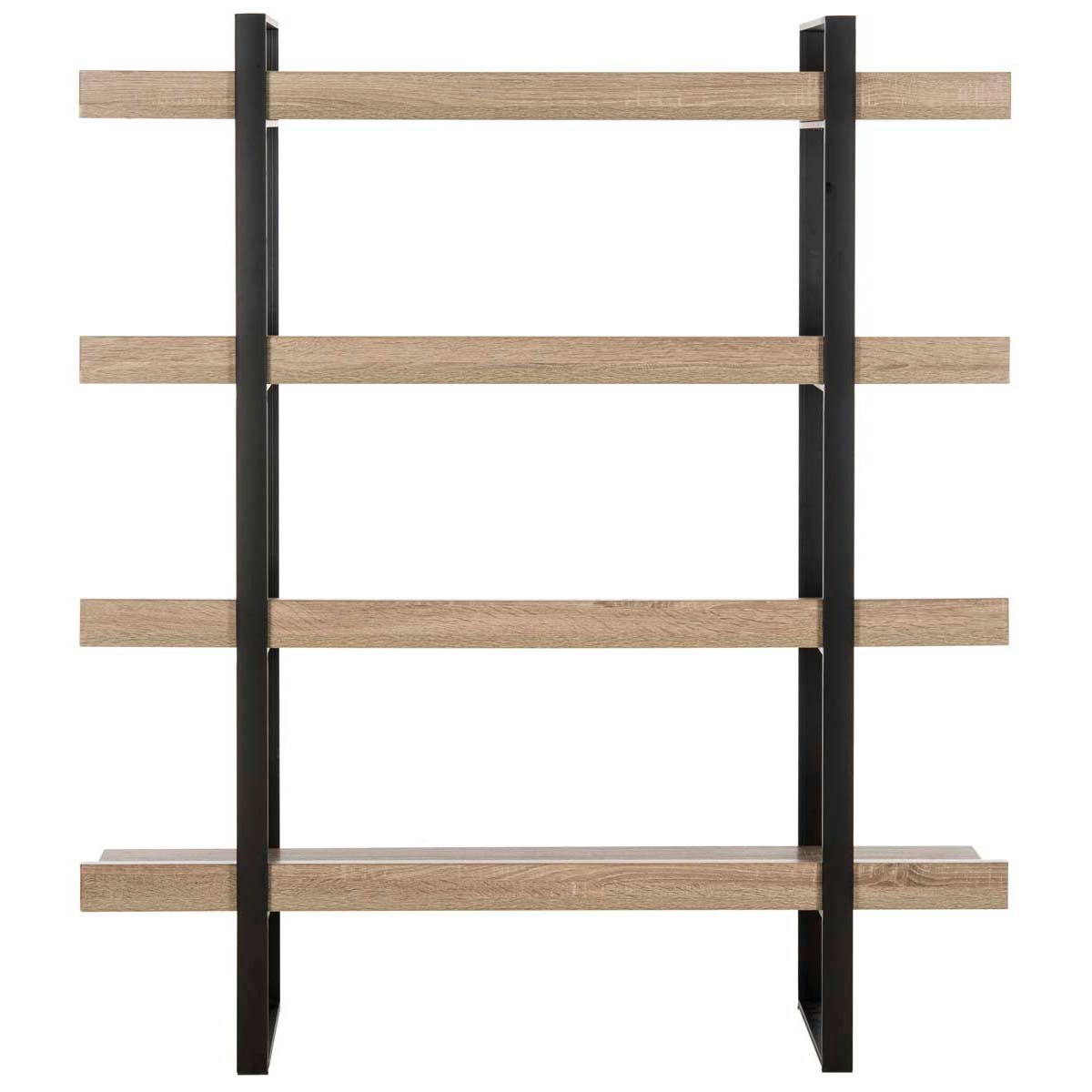 This striking mid century 4 tier ?tag?re was inspired by a vintage find in Belgium?? foremost design gallery. Its natural oak finish and black iron construction create four layers of sculptural living room storage ideal for curating favorite objects.