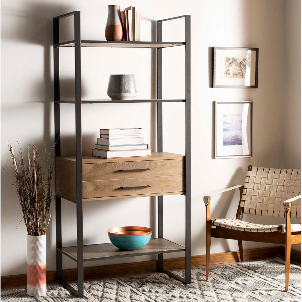 Safavieh Skylar 4 Tier 1 Drawer Etagere - Gun Metal/Rustic Oak