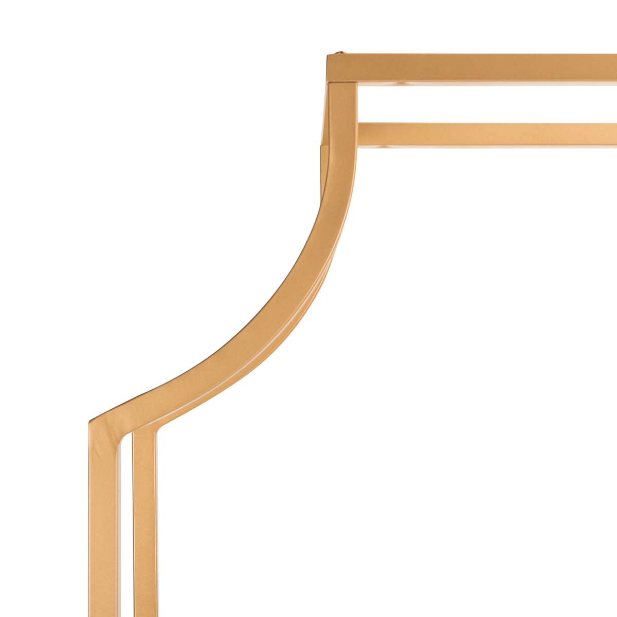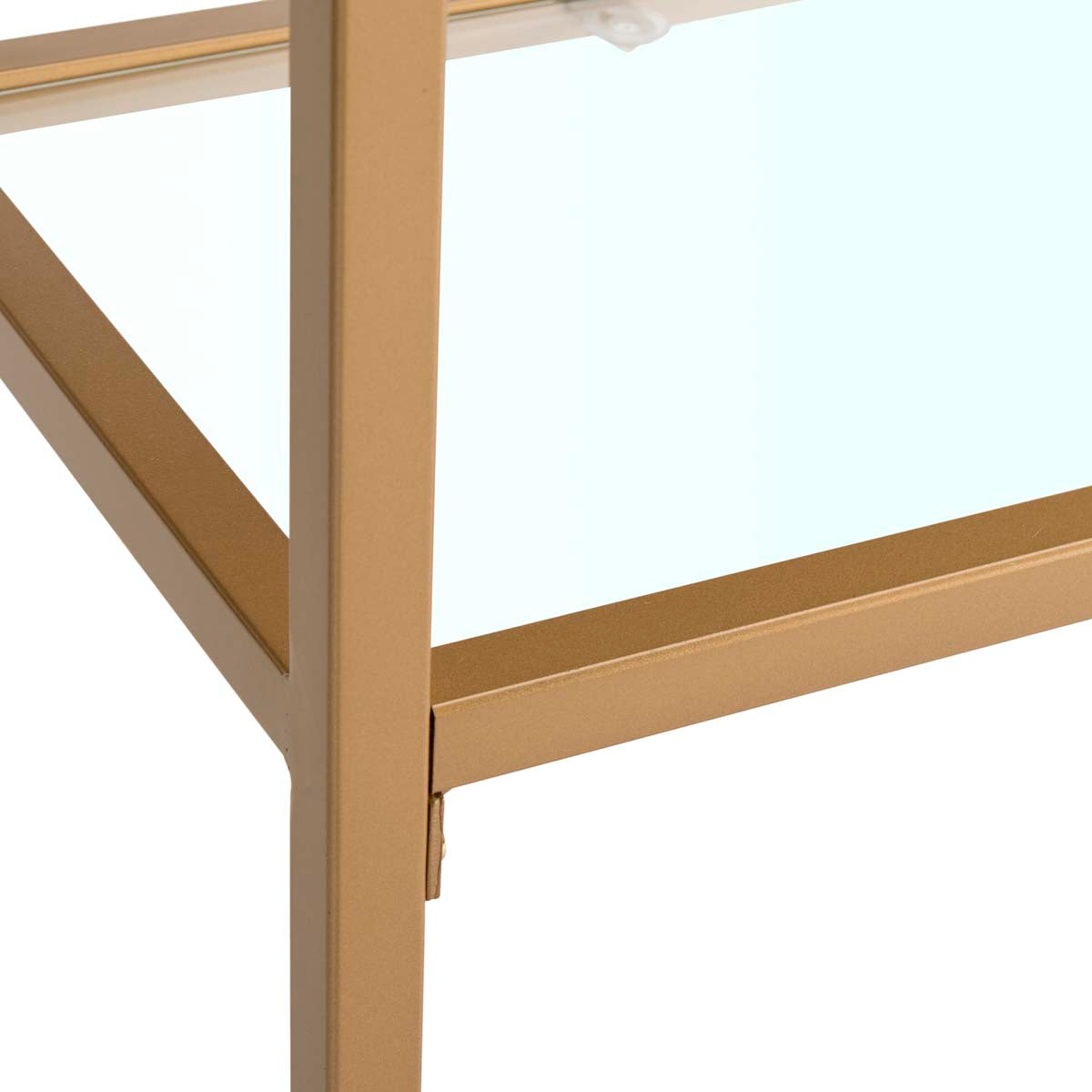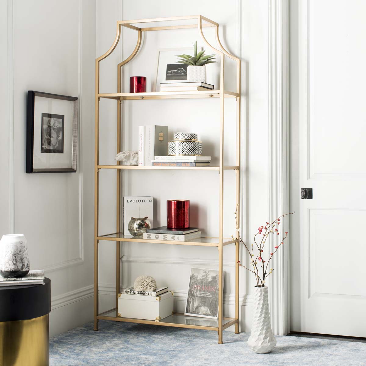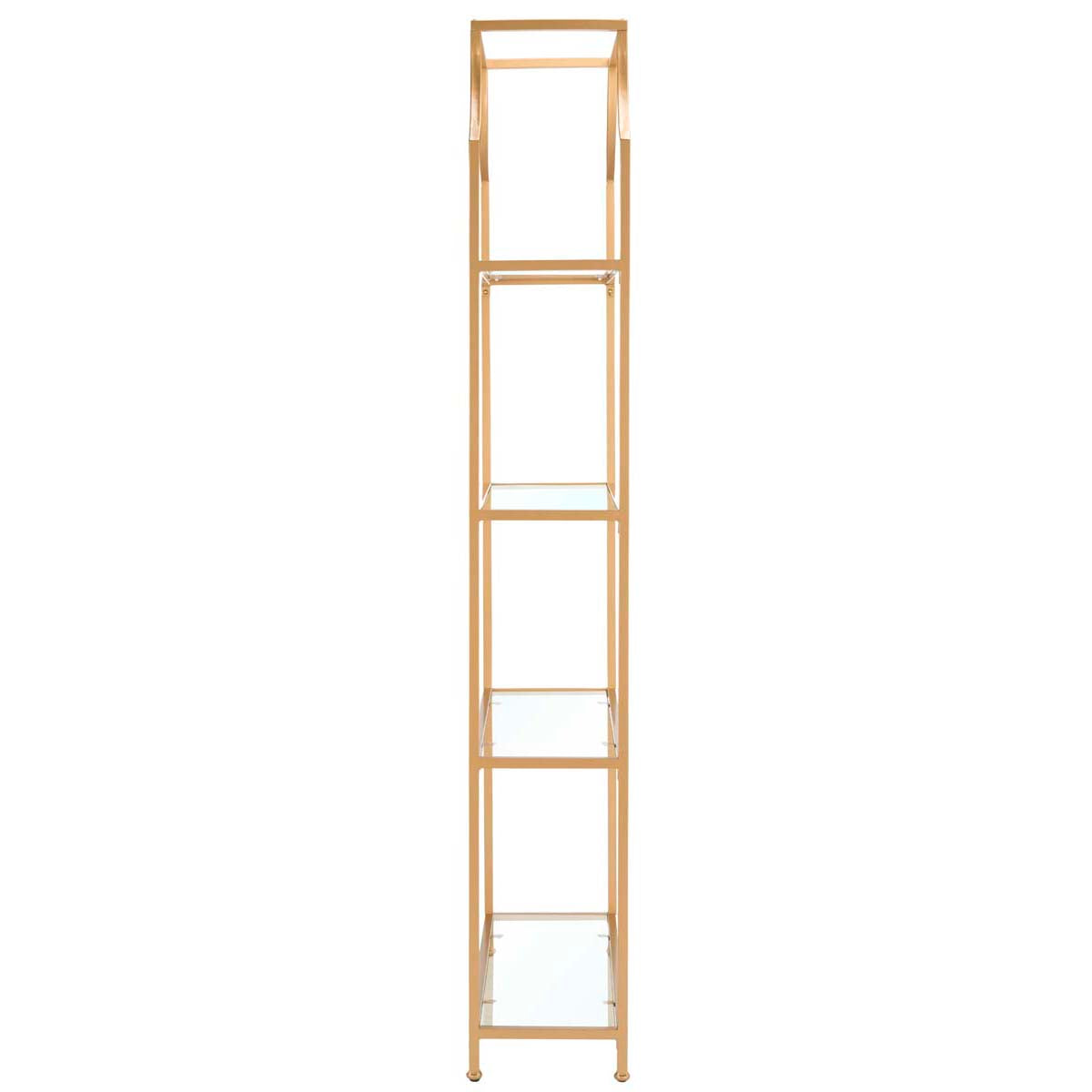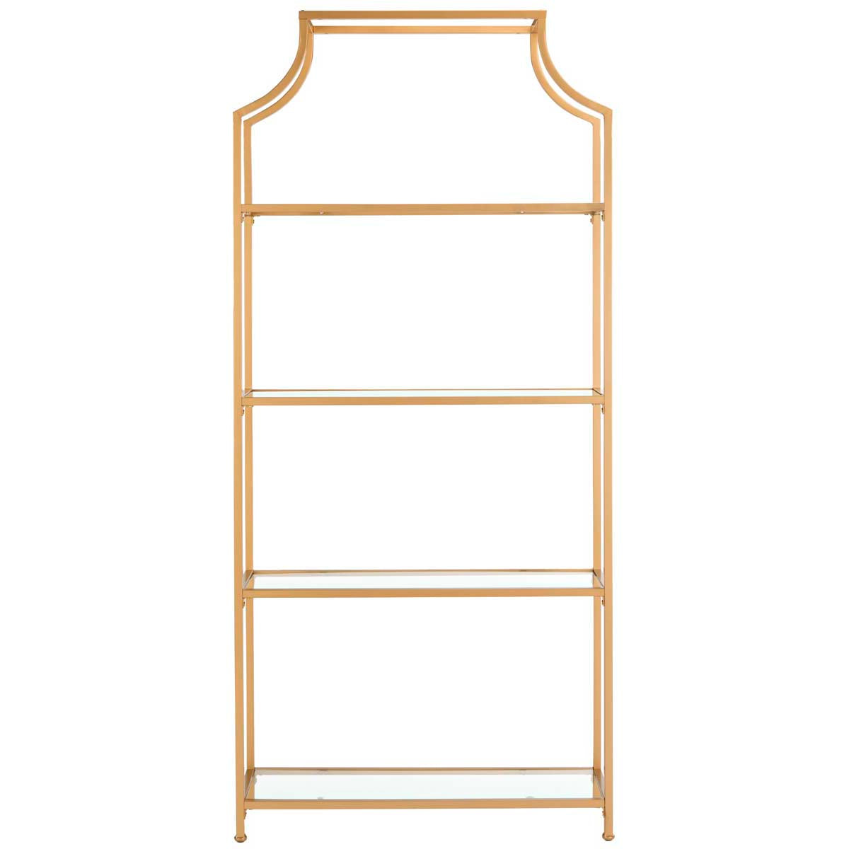 This 4 tier ?tag?re offers a stylish way to store and display. Designed with a bright gold finish, it features sturdy metal construction, clear open shelves and clean lines that create four layers of storage for the living room, kitchen or great room.