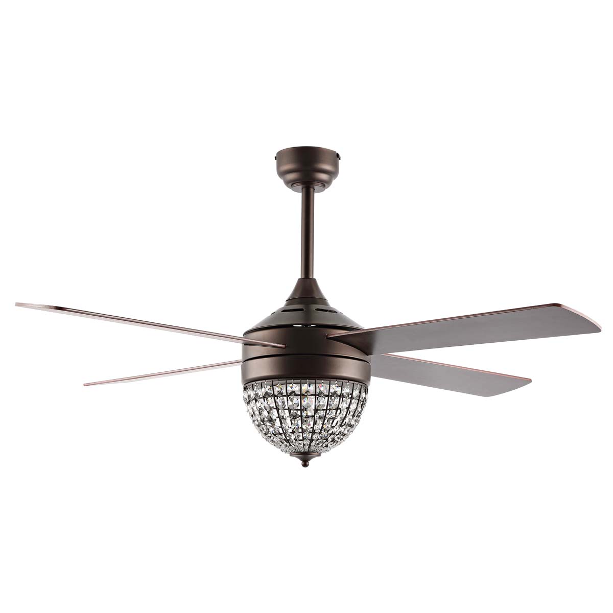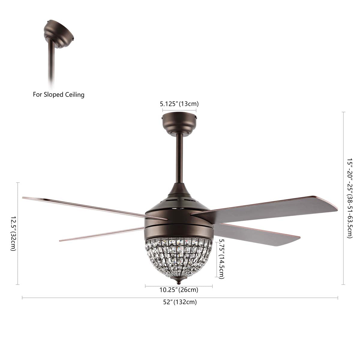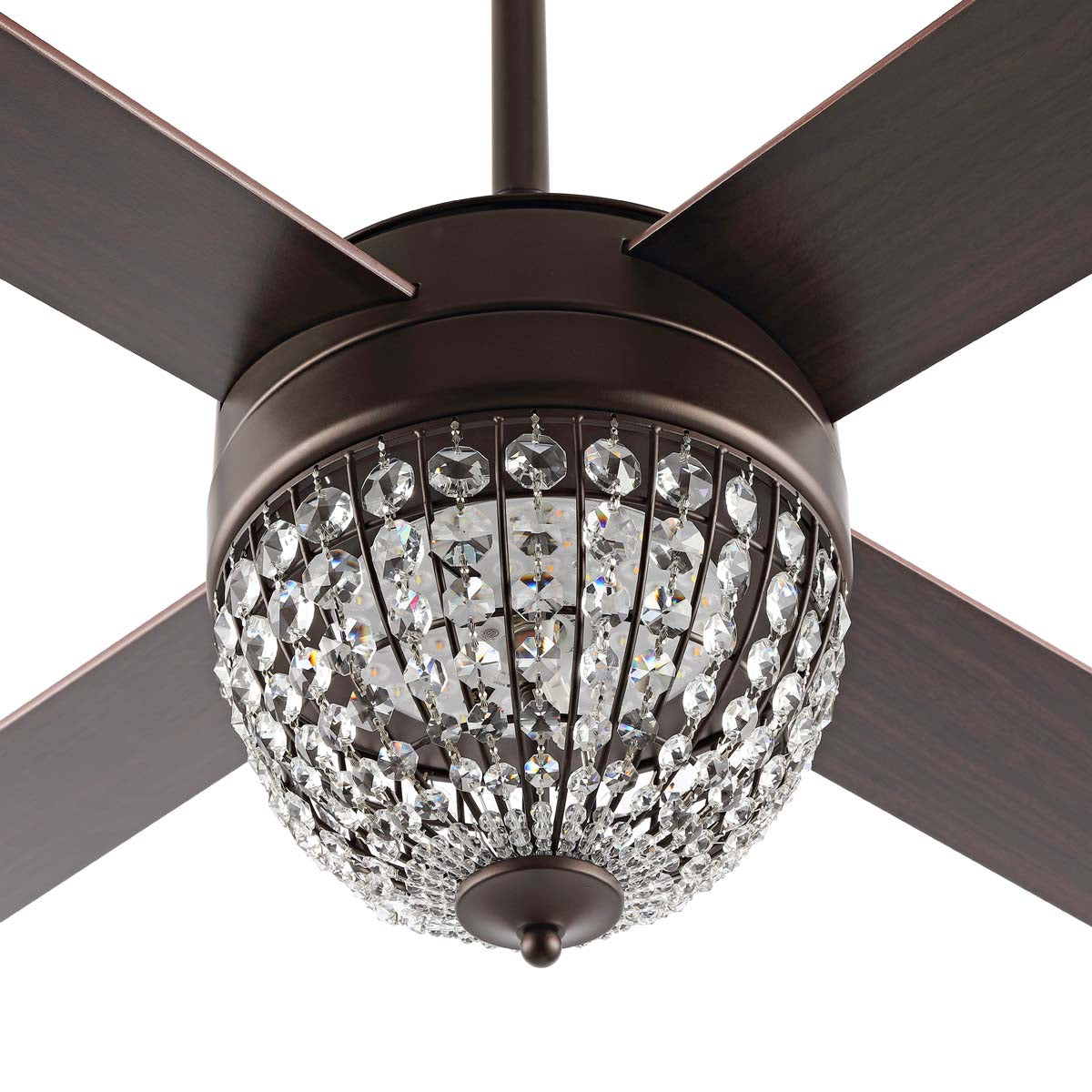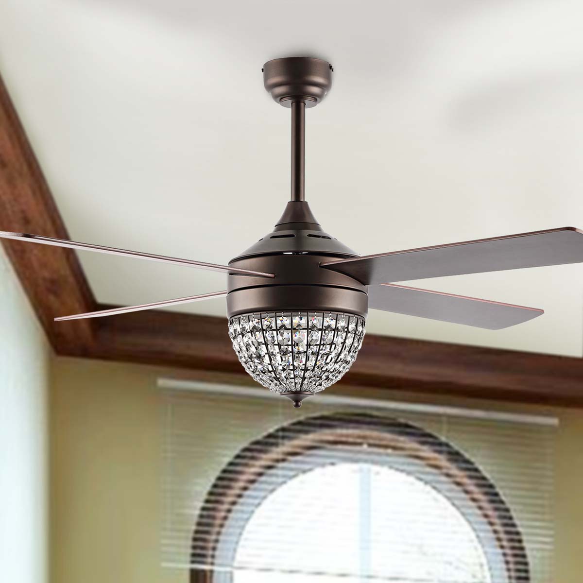 Embrace the luxurious charm of our Crista ceiling fan. Our multifunctional ceiling fan features a gorgeous light fixture. Its elegant semi-circular canopy is enriched with shiny crystals, allowing the fan to dazzle with luxury and glam. It is completed with an oil-rubbed bronze finish to lend a charming, lived-in appeal. The ceiling fan is fitted with 5 blades to deliver powerful airflow and comfort. A stunning centerpiece for any room, our ceiling fan serves as a durable and long-lasting addition to your home.
