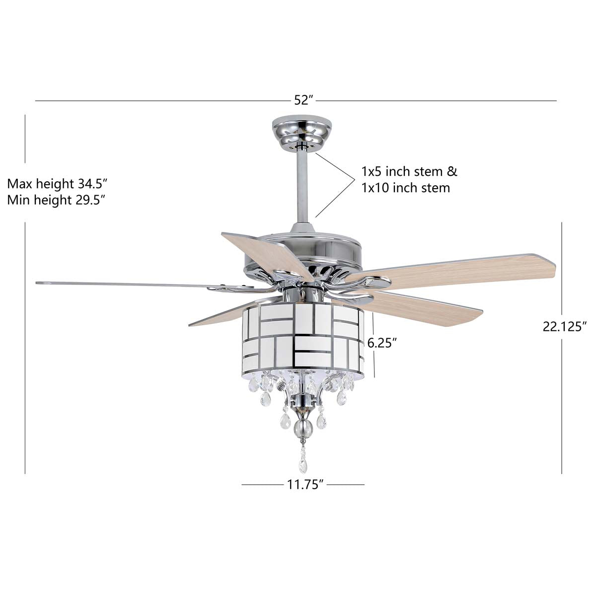 Bring a blend of modern sophistication and traditional glamour to your d?cor with this Fint Ceiling Light Fan. Pairing a sleek geometric pattern with captivating chrome and crystal, Fint celebrates form and function, including a remote control for effortless operation.