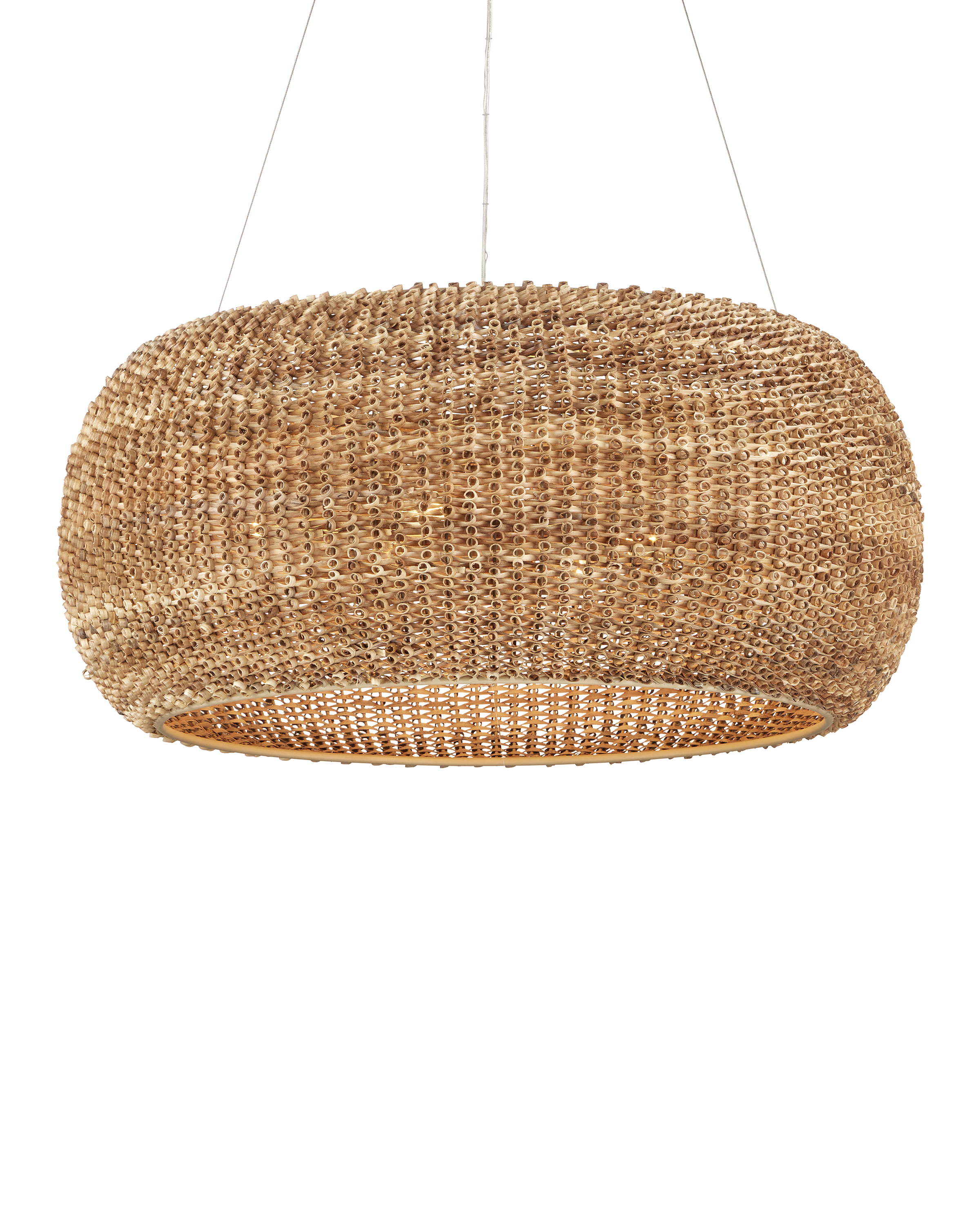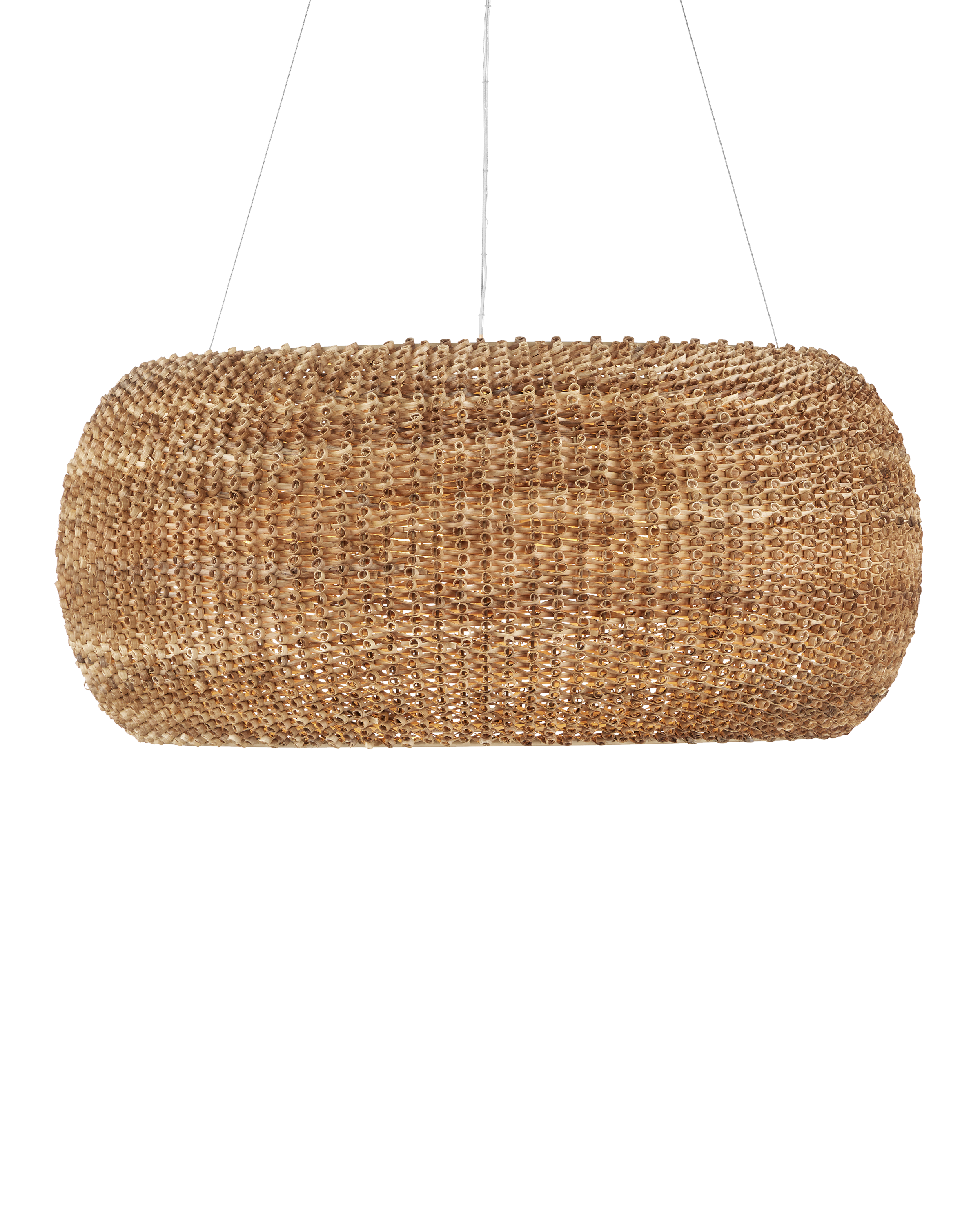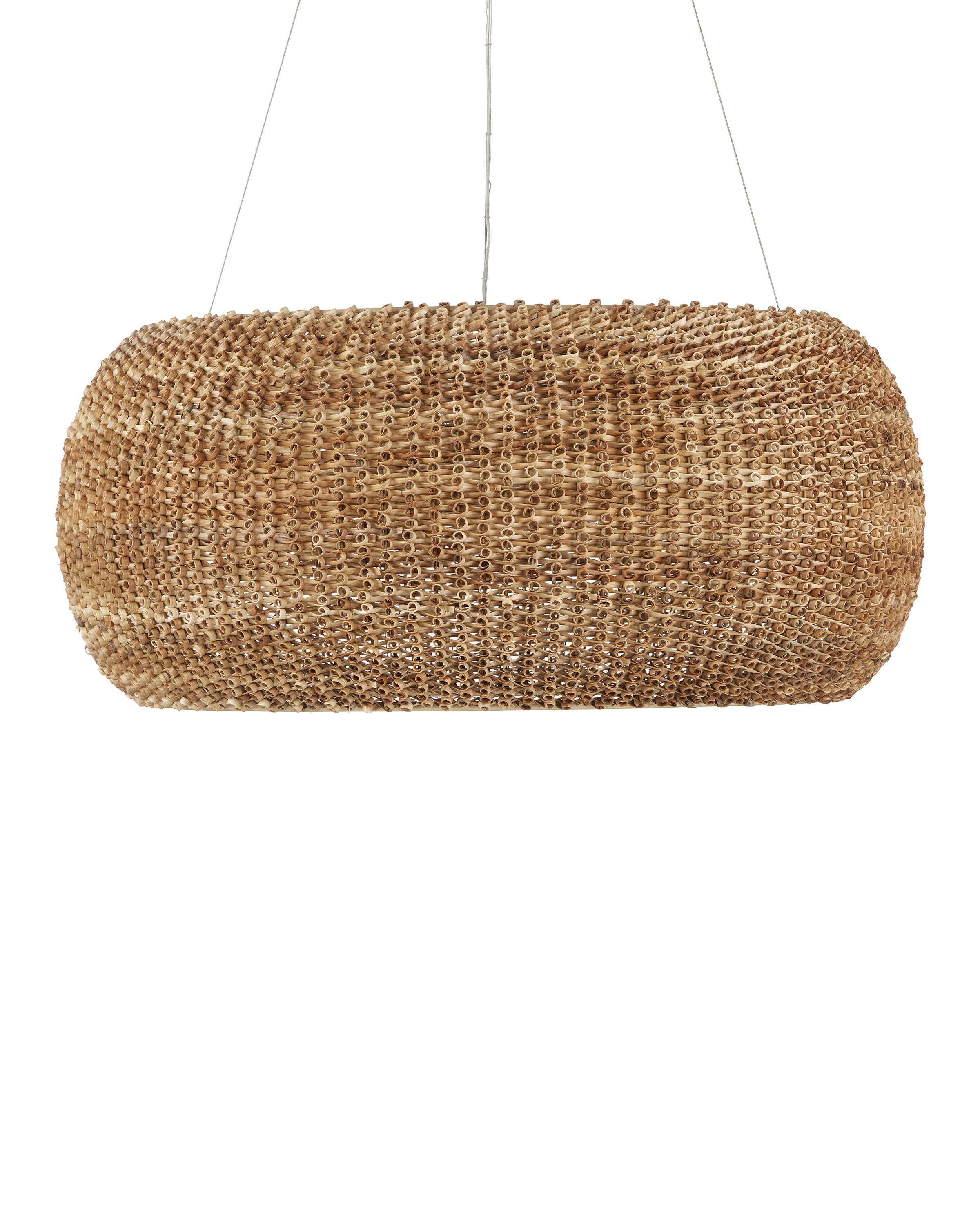 Made from a process that is similar to quilling with paper, the Boucle Chandelier is fashioned from looping natural rattan that has textural curls on the edges. This is a complex weave that is incredibly time-consuming to achieve with the level of consistency that creates a seamless shade. Wrapped around a wrought iron frame in a beige finish, the rattan chandelier will bring great warmth to a space. Adjustable from 36" to 158" with use of included chain/rod kit/cable. If your space calls for a longer drop, additional chain/rods/cable is available for purchase.