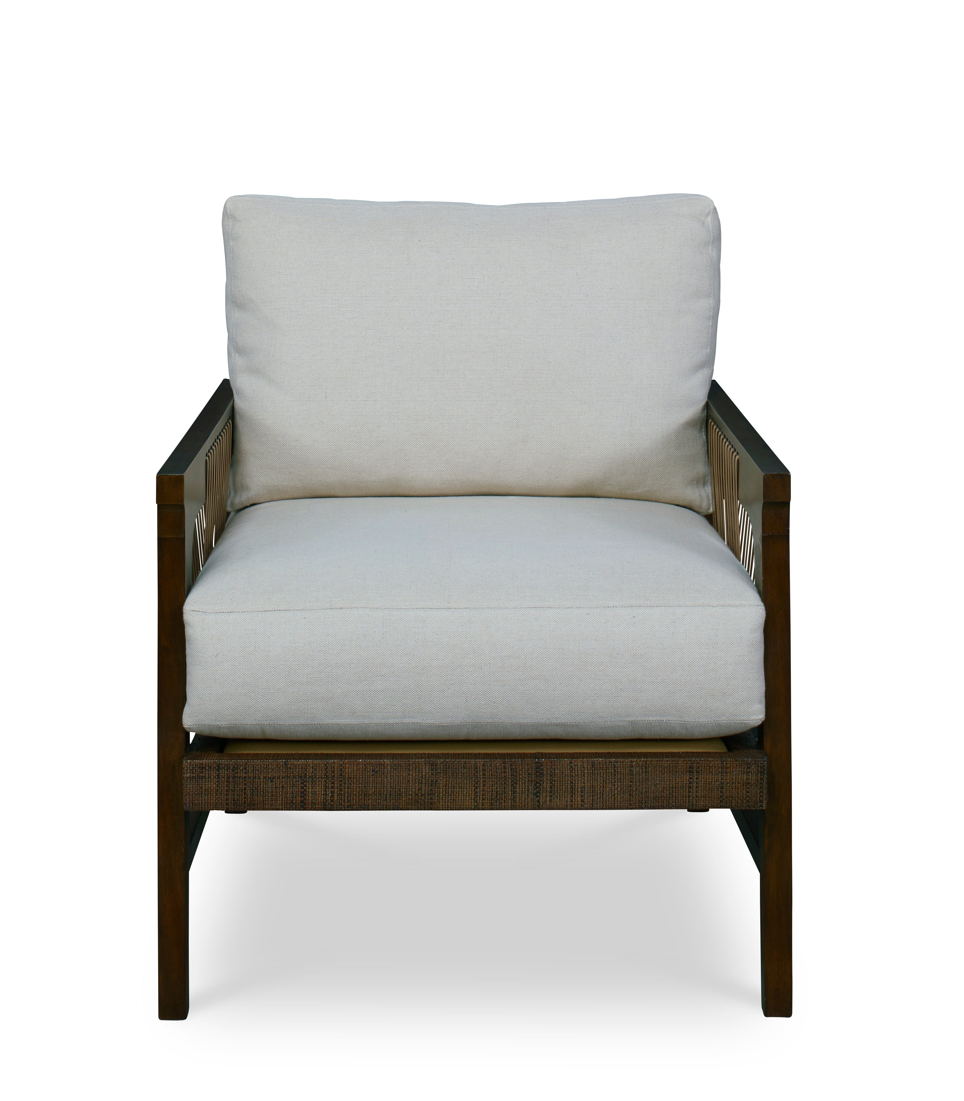 The Marley Lounge Chair combines Mahogany, deep comfort cushions, leather strapping and natural Lampacanay fibers to create a beautiful lounge chair that offers visual appeal from every angle. The arms feature leather strapping detail that comes up from the bottom of the chair and pierces the Mahogany arms. The frame back and seat are wrapped in a brown stained Lampacanay natural fiber and resting inside are plush upholstered back and seat cushions.