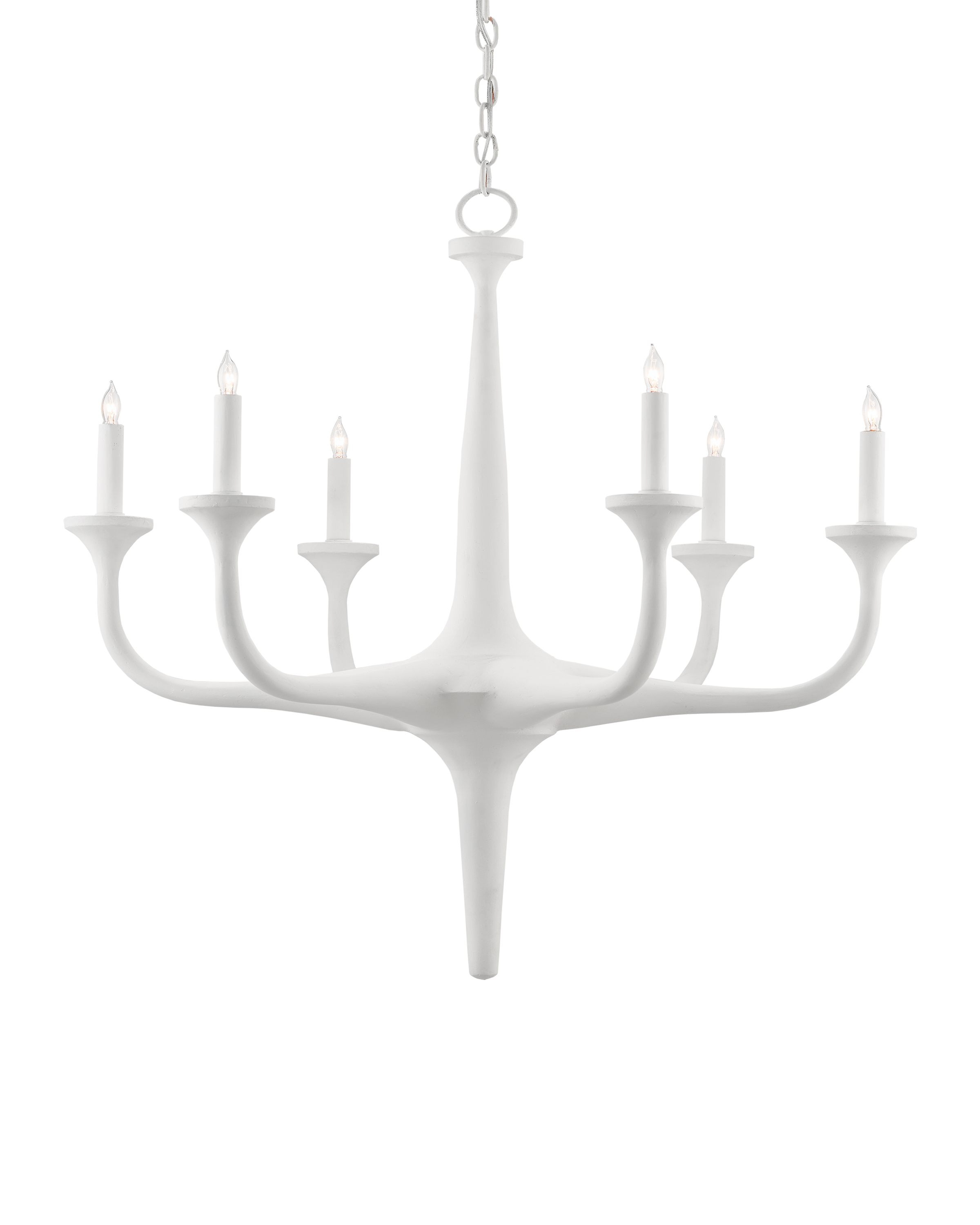 The Albion Chandelier seems far too ethereal to be made of wrought iron, but that is the material this white chandelier is fashioned from. The Albion is so smoothly covered in a gesso white finish that it reads like it has been sculpted from a pliable material. Adjustable from 39" to 108" with use of included chain/rod kit/cable. If your space calls for a longer drop, additional chain/rods/cable is available for purchase.