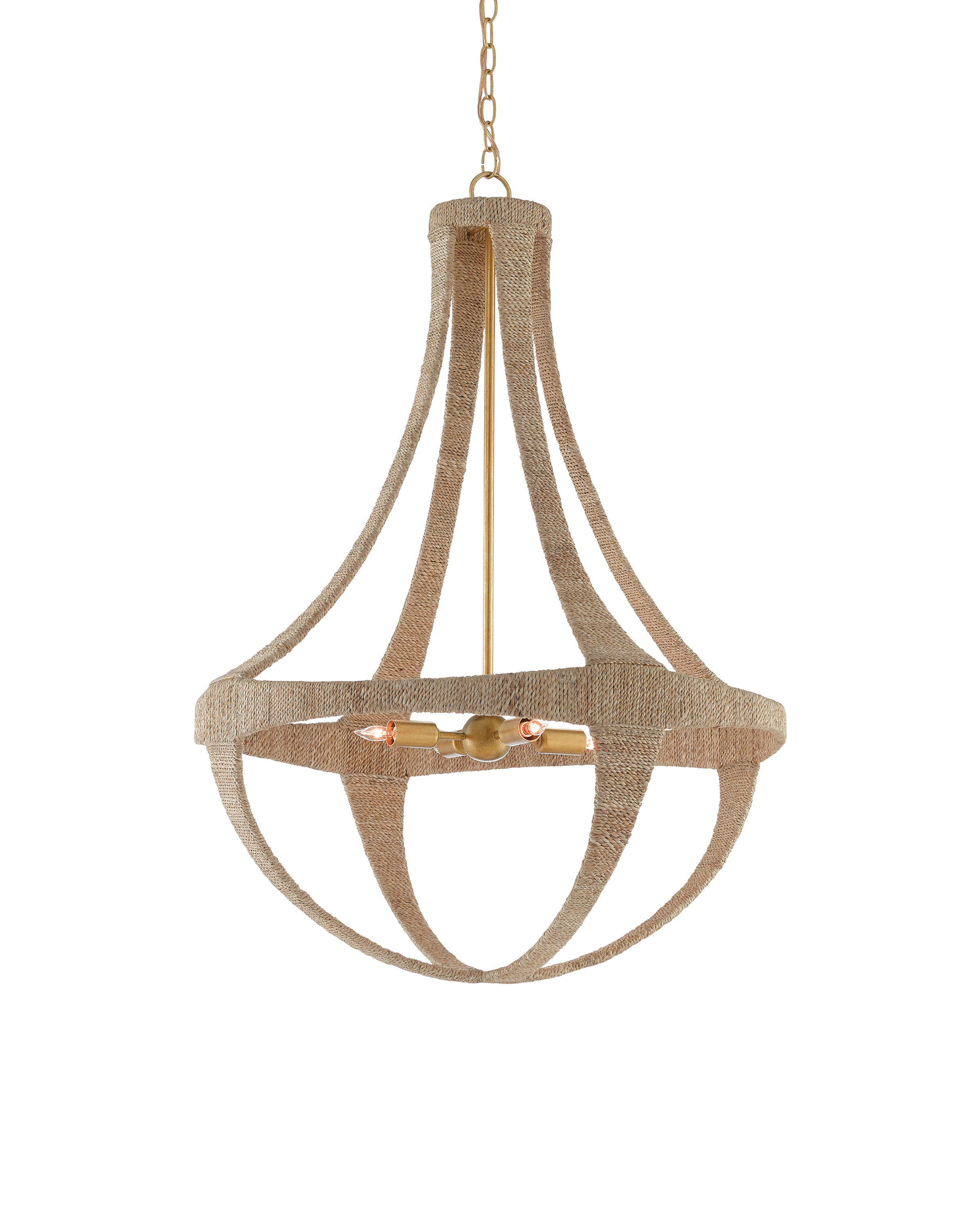 Our Ibiza Chandelier is wrapped in Abaca rope to make this one of our fixtures that illustrate the skill of our talented artisans, as it takes dexterity and patience to cover a frame so seamlessly. The hardware on the nautical chandelier, in a dark contemporary gold leaf finish, echoes the warm tones in the rope. Adjustable from 44.5" to 114.5" with use of included chain/rod kit/cable. If your space calls for a longer drop, additional chain/rods/cable is available for purchase.