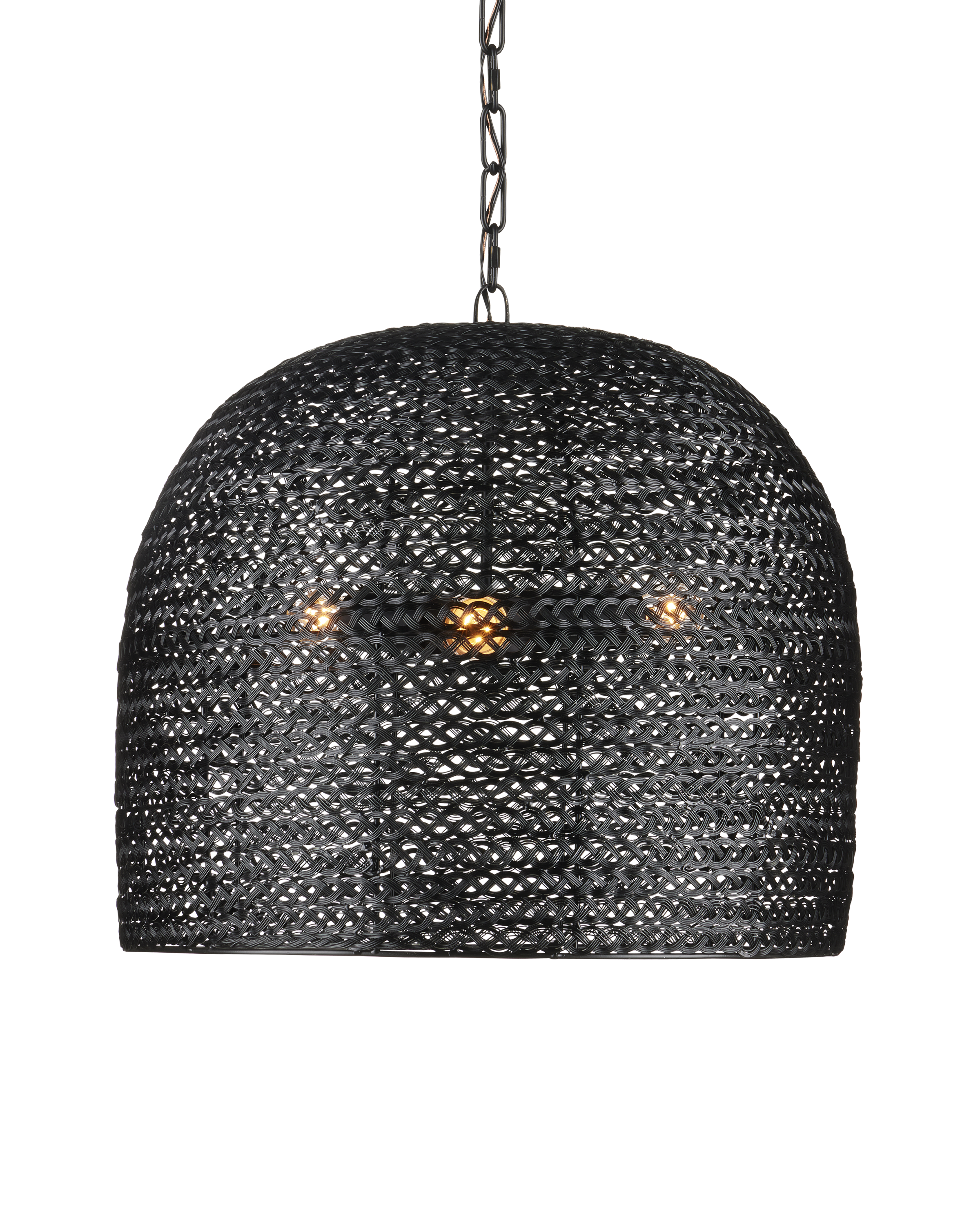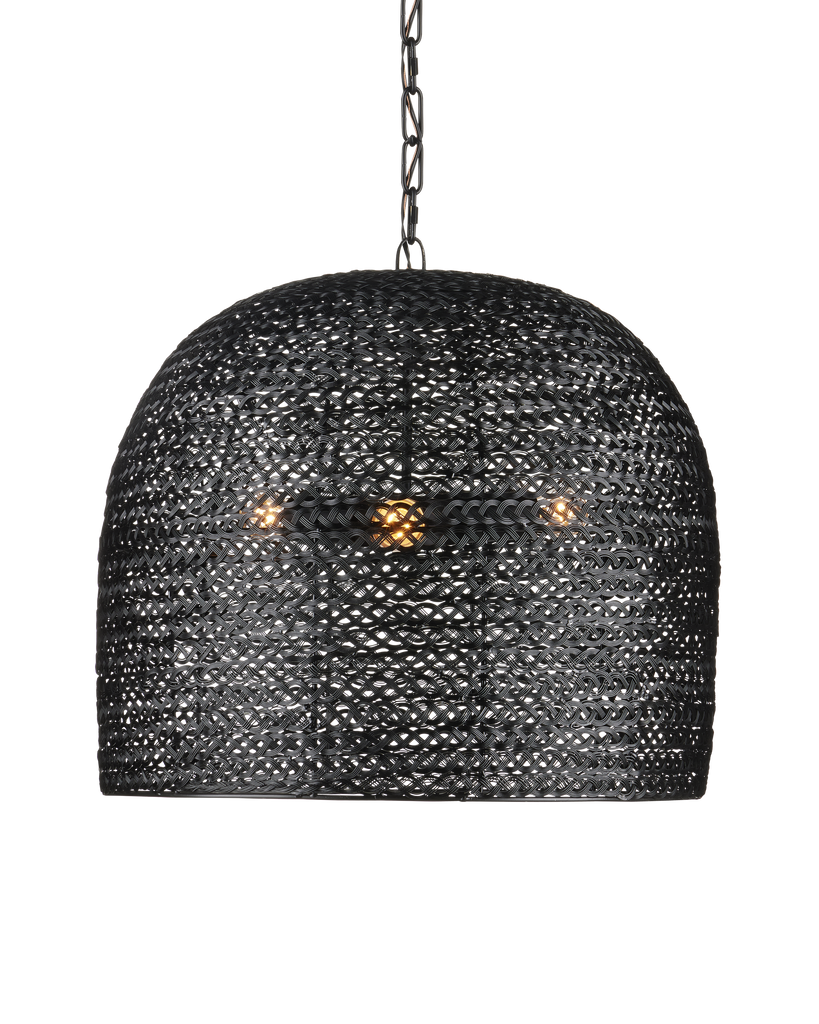 The Piero Medium Black Chandelier may appear to be woven from a natural plant material but it is made of iron in a satin black finish to make it an exemplar of the skills that our craftspeople bring to their work. When the black chandelier is illuminated, textural patterns will enliven surrounding surfaces; when it is not, the flowing weave will continue to be a textural accent in a space. Adjustable from 27.75" to 94" with use of included chain/rod kit/cable. If your space calls for a longer drop, additional chain/rods/cable is available for purchase.