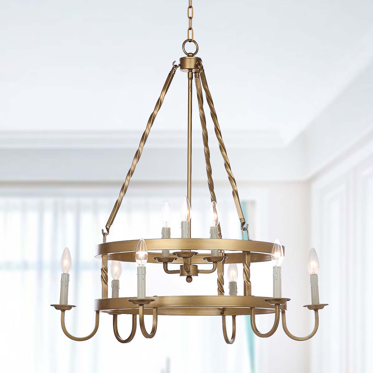Designed to recall the Park Avenue home of NYC?? most famous doyenne, this gold 31 inch diameter adjustable chandelier is the jewel of any space. Its two chic tiers of ambient lighting bring glamour to the living room, bedroom or stylish home office.