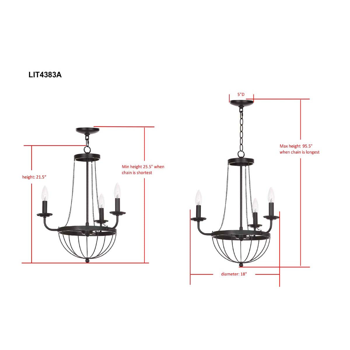 Safavieh Jacques 18 Inch Dia Adjustable Chandelier-Black