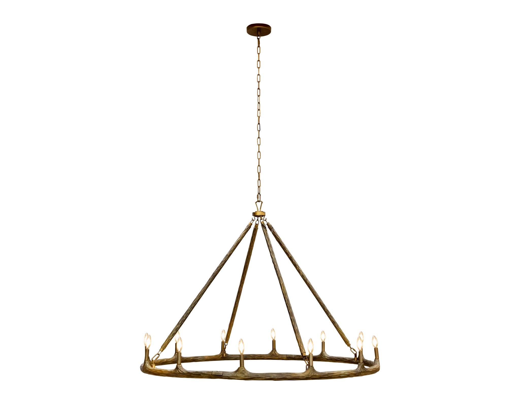 The Wolfgang Chandelier is a unique take on rustic sophistication. Crafted from casted aluminum with an antique brass finish, this piece brings a metallic hand-hammered look that will instill a dash of intrigue to its surroundings.