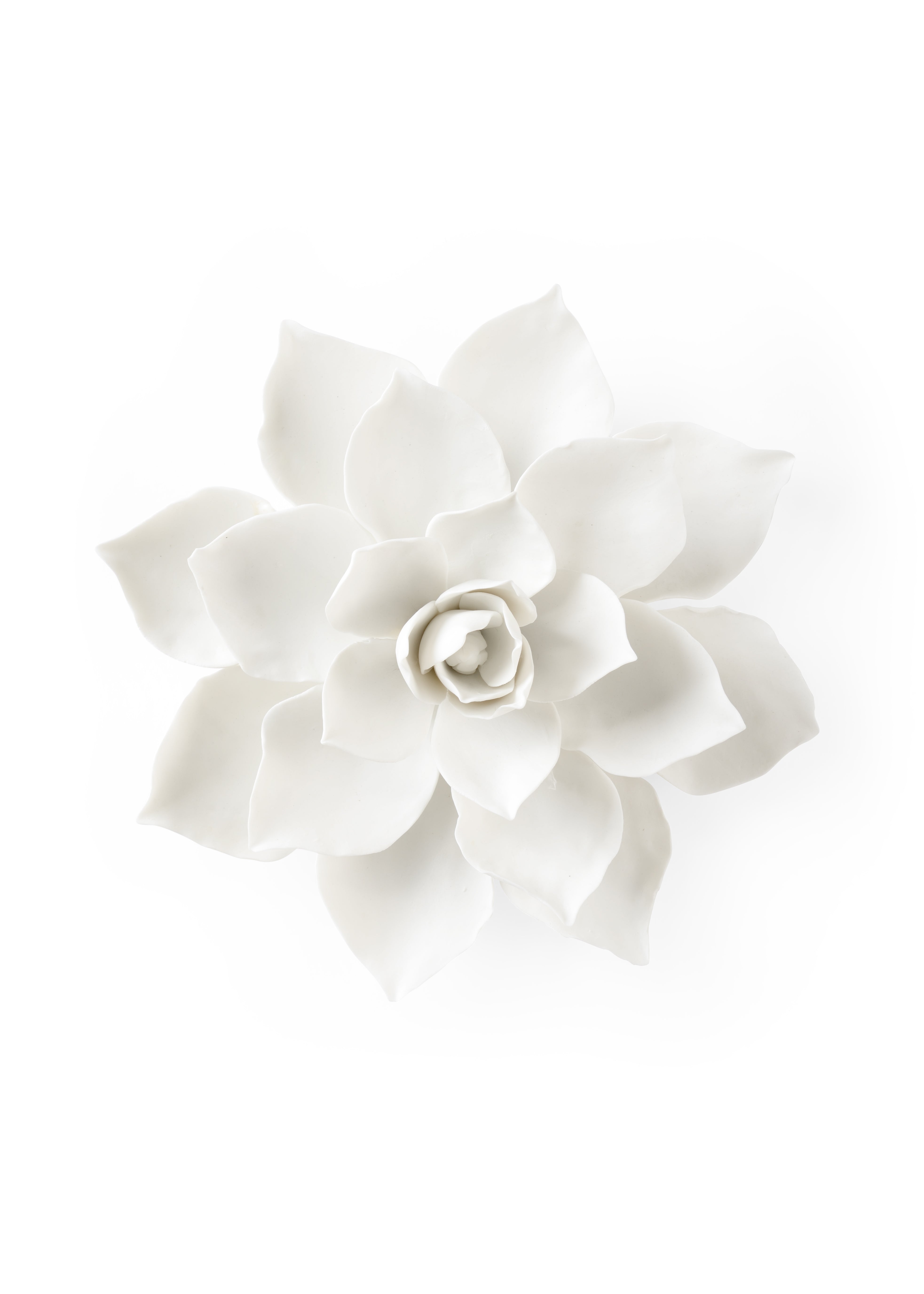 Ceramic Magnolia Wall Flower in matte white finish. Use as a single accent or make a fabulous grouping. Designed by Elizabeth Wicker.
