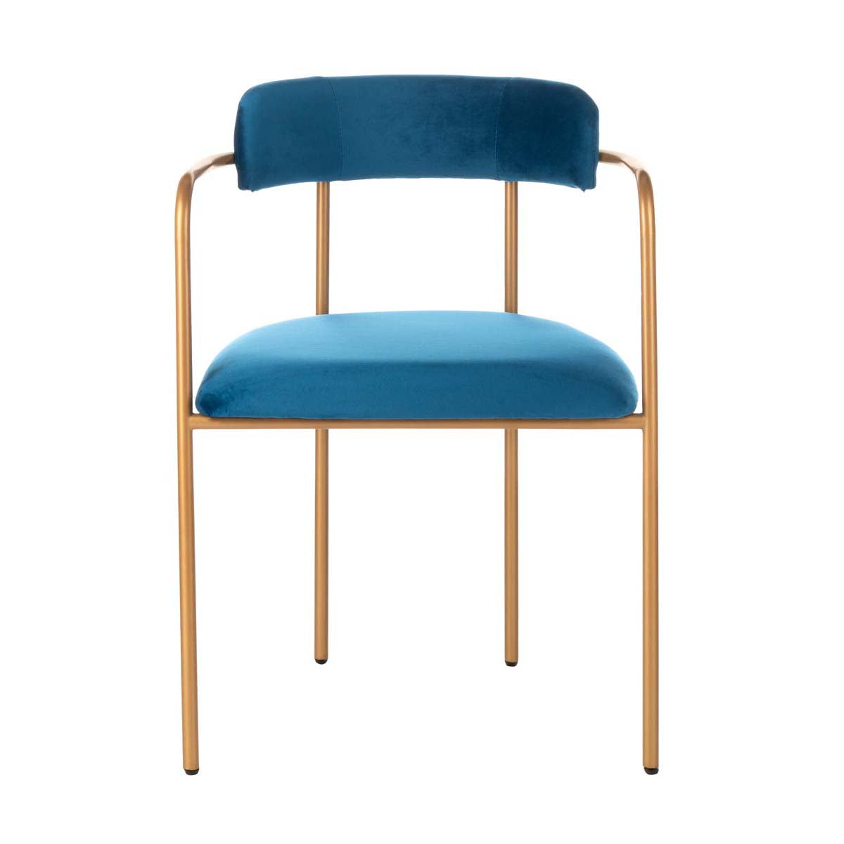 Sleek and sophisticated, this Camile Side Chair adds instant flair to your decor. Camille's clean lined open frame shines in a liquid gold finish perfectly paired with rich malachite green velvet, ensuring hours of comfortable seating in any room. Sold in sets of two.