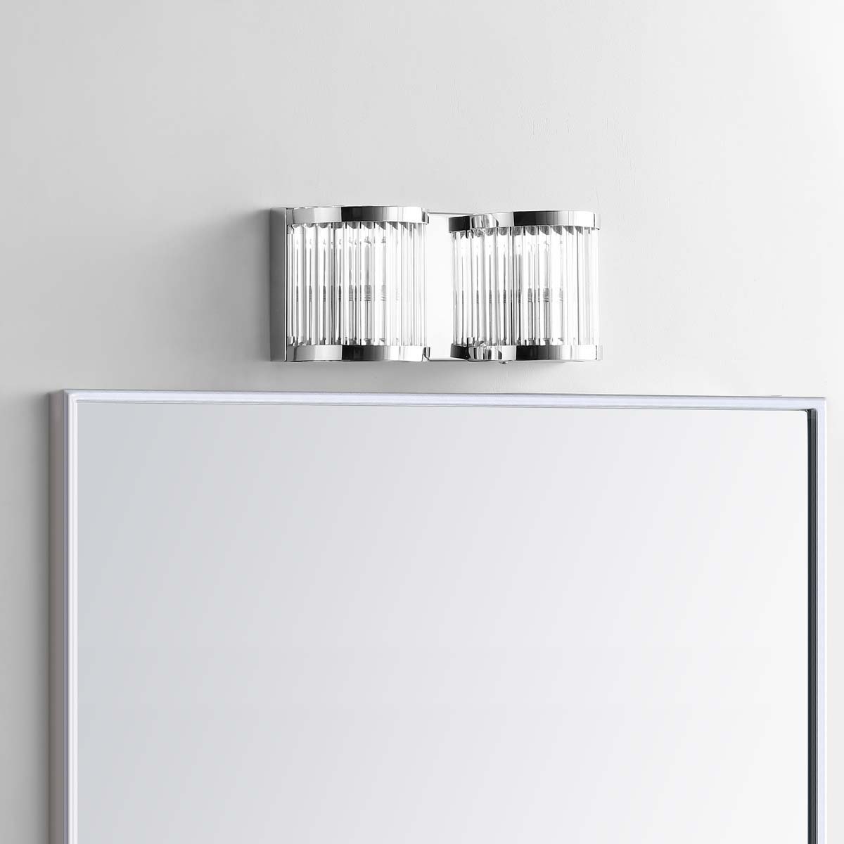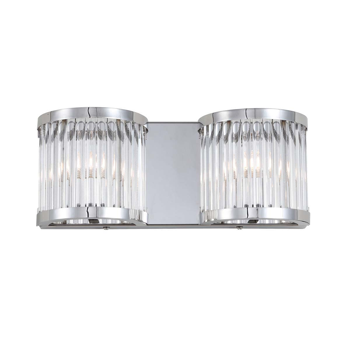 A stunning display of elegant symmetry, the Karter Two Light Wall Sconce is the Gatsby gala of lighting. Casting the ambiance of a starlet ’s dressing room, the smooth, curved chrome finish of this sleek light fixture showcases is undulating glass shade and Art Deco influences.
