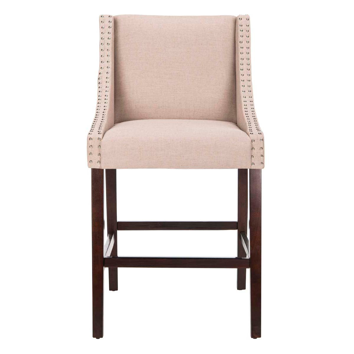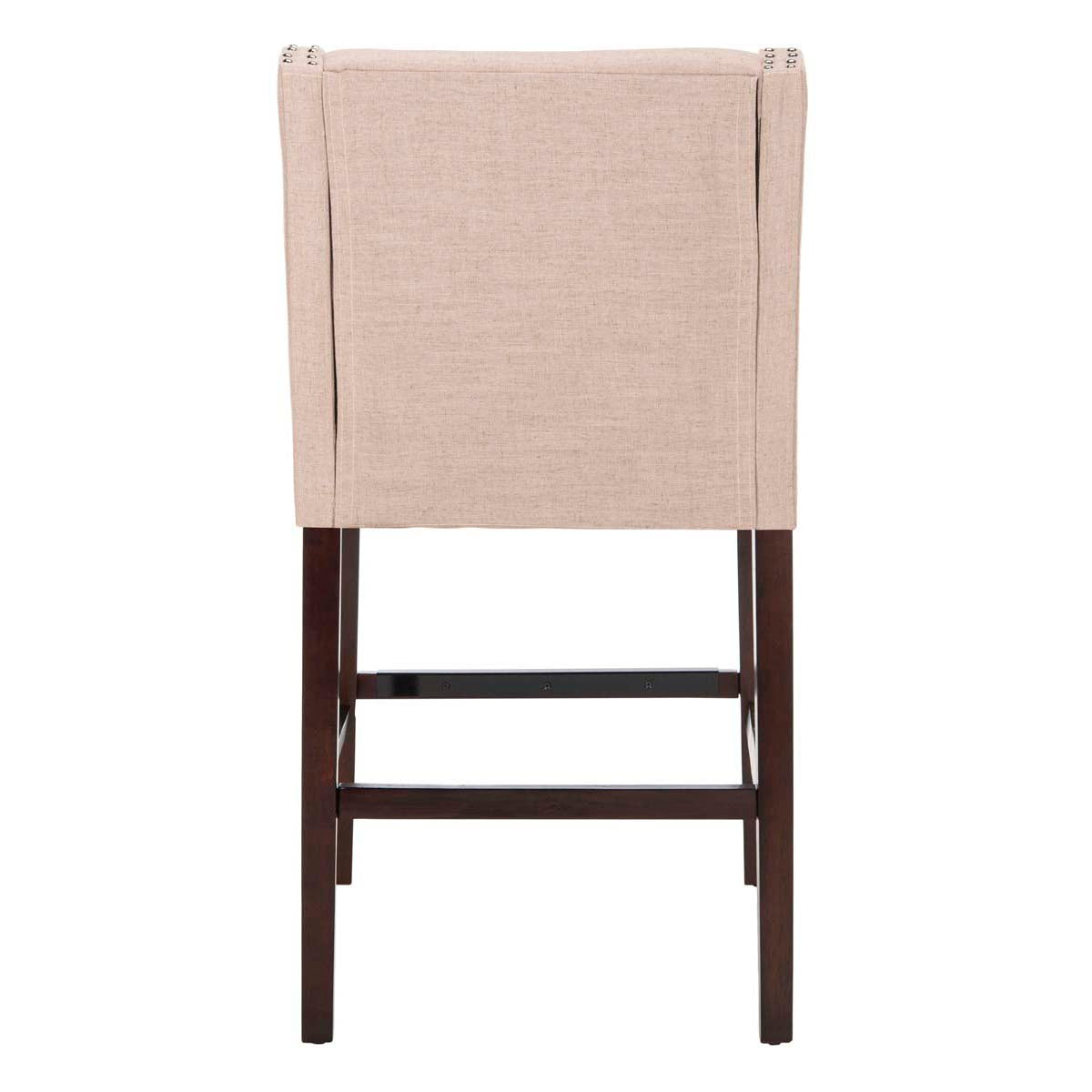 Inspired by the elegant interiors created by a top Belgian decorator and antiques dealer, this chic bar stool is imbued with soft modern style. Its taupe linen upholstery and espresso legs make any gathering a sophisticated affair.