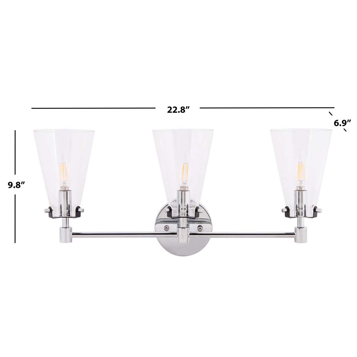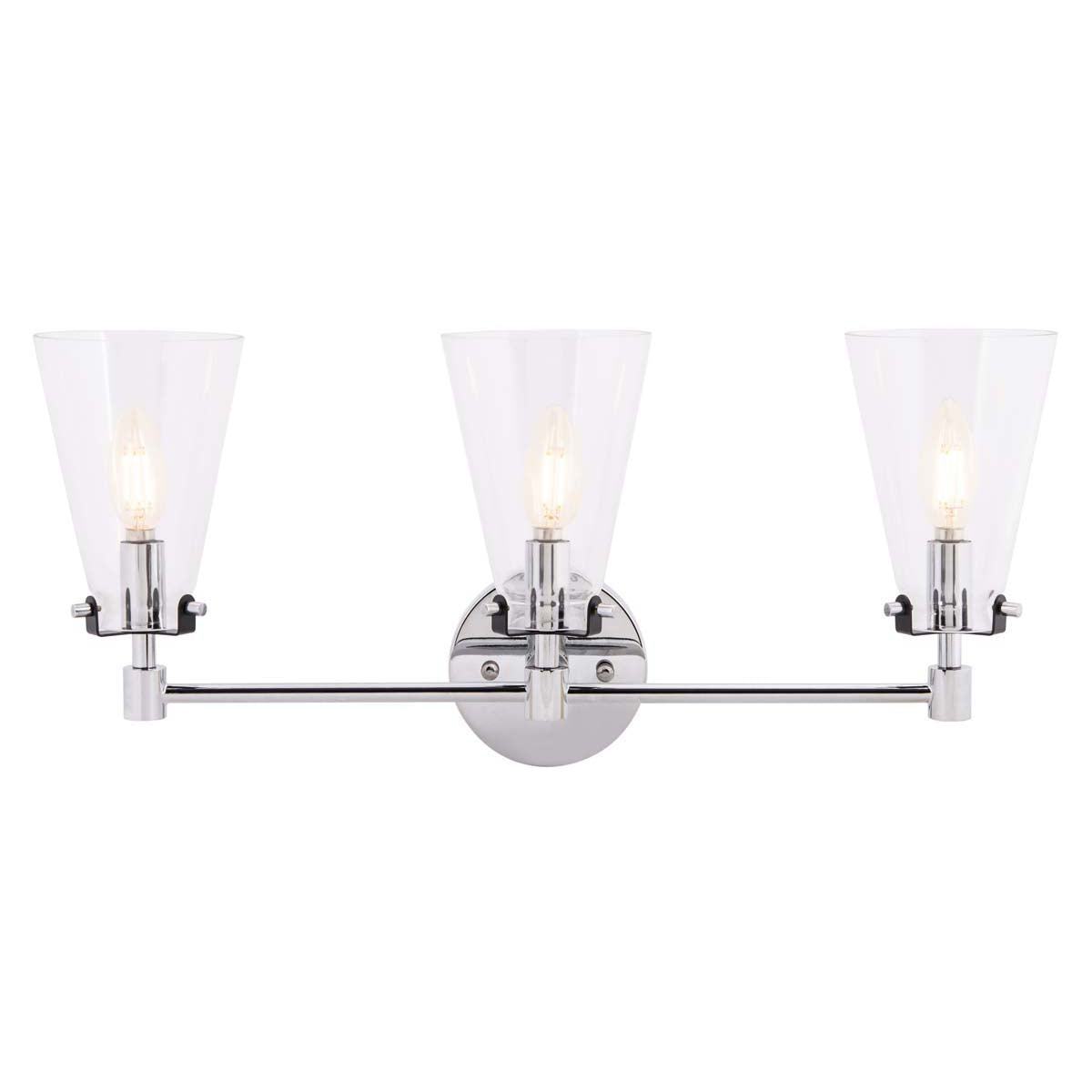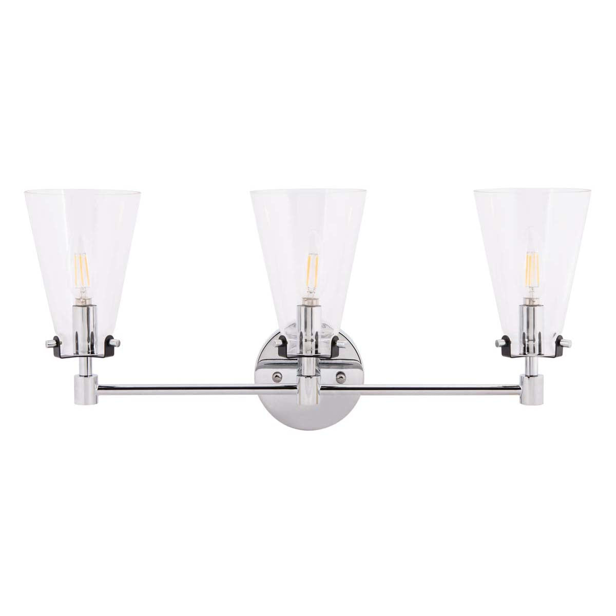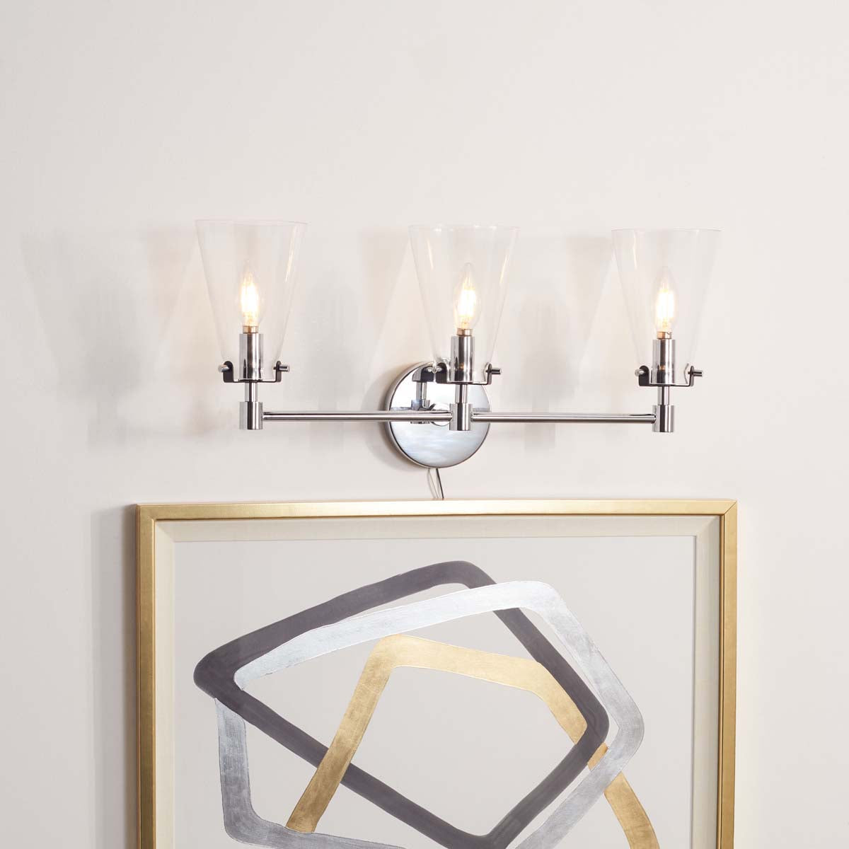 This Lonsen Vanity Sconce is the picture perfect way to illuminate your reflection with style and chic. Lonsen?? three conic glass shades cast a soft glow, held aloft by a sleek chrome body designed to effortlessly accent any interior.