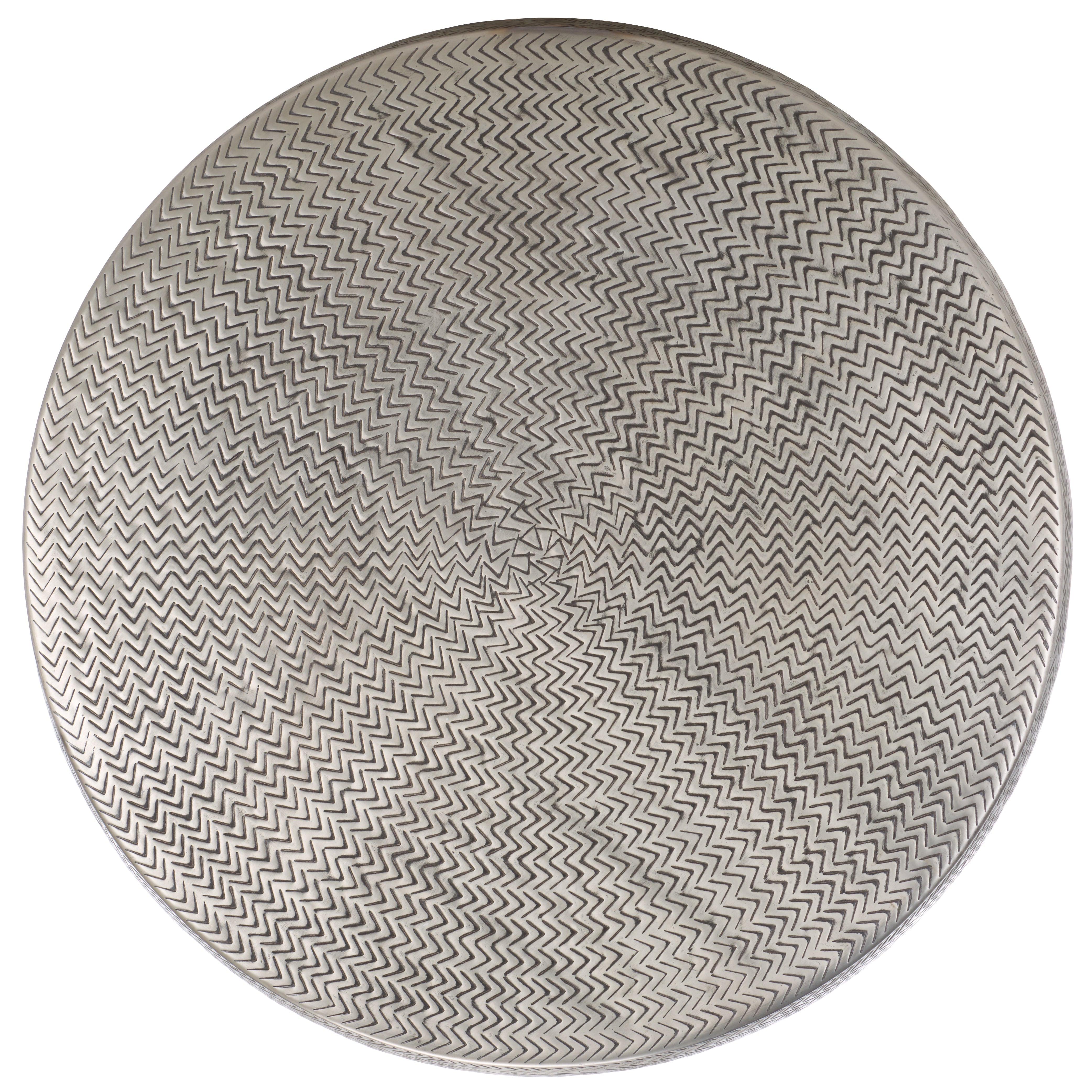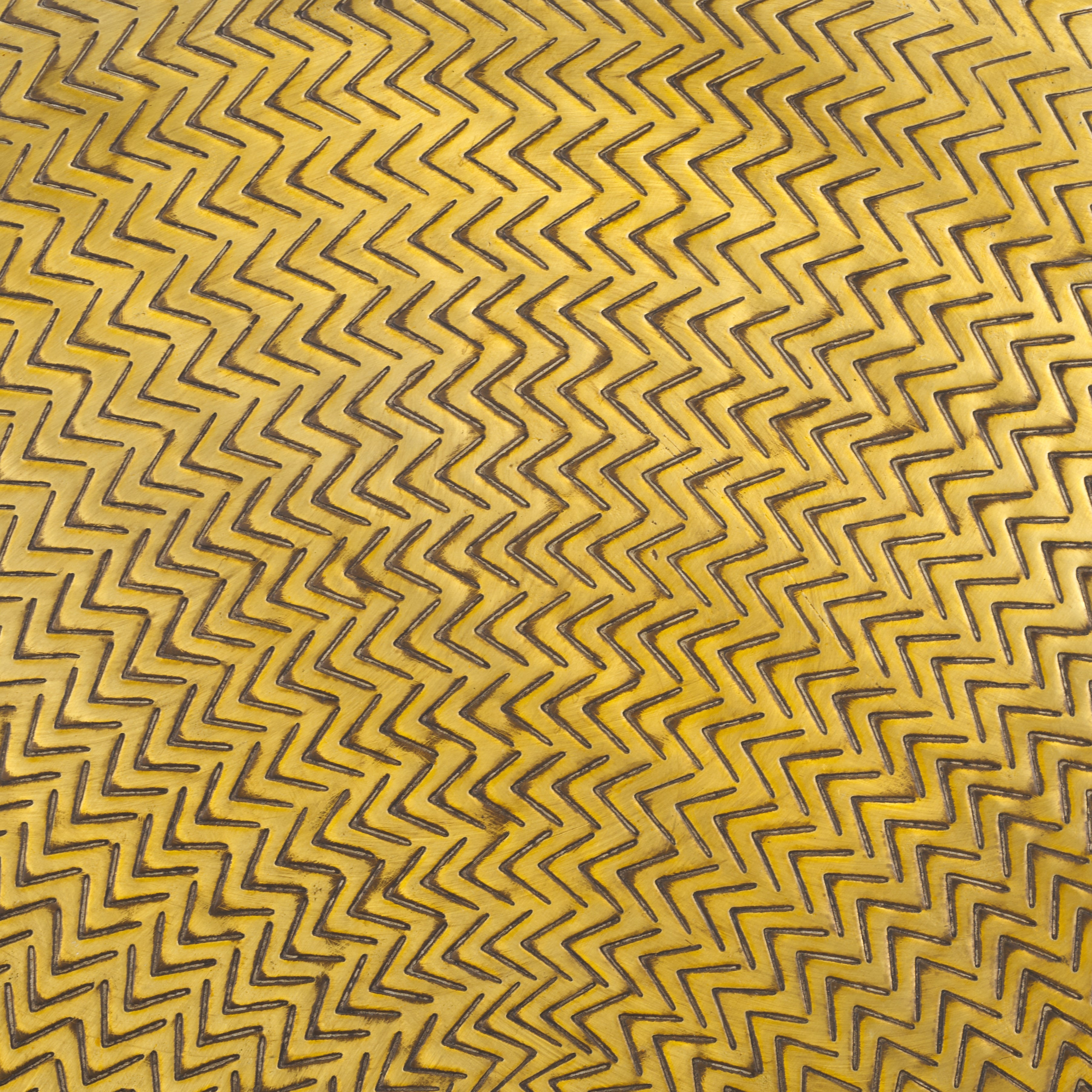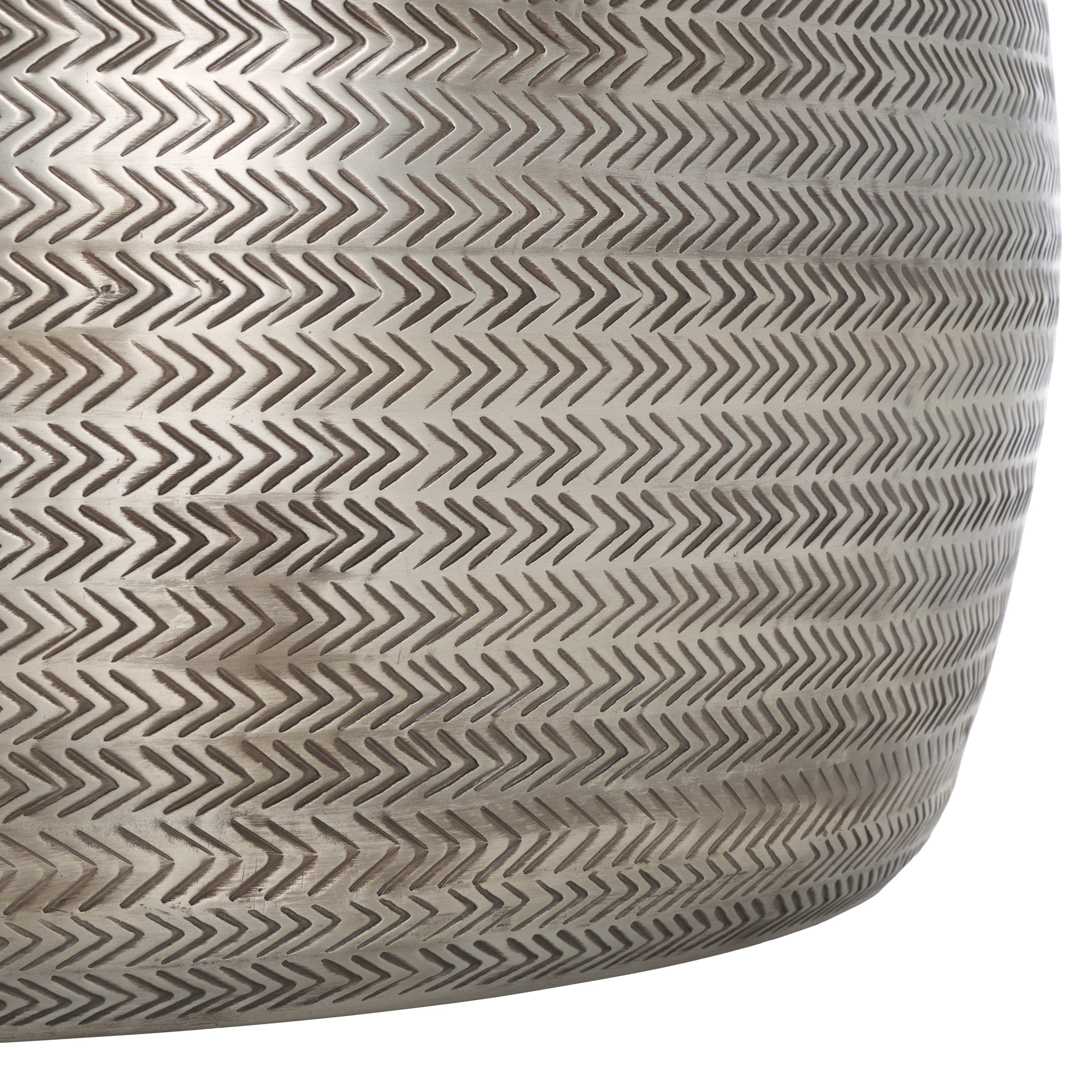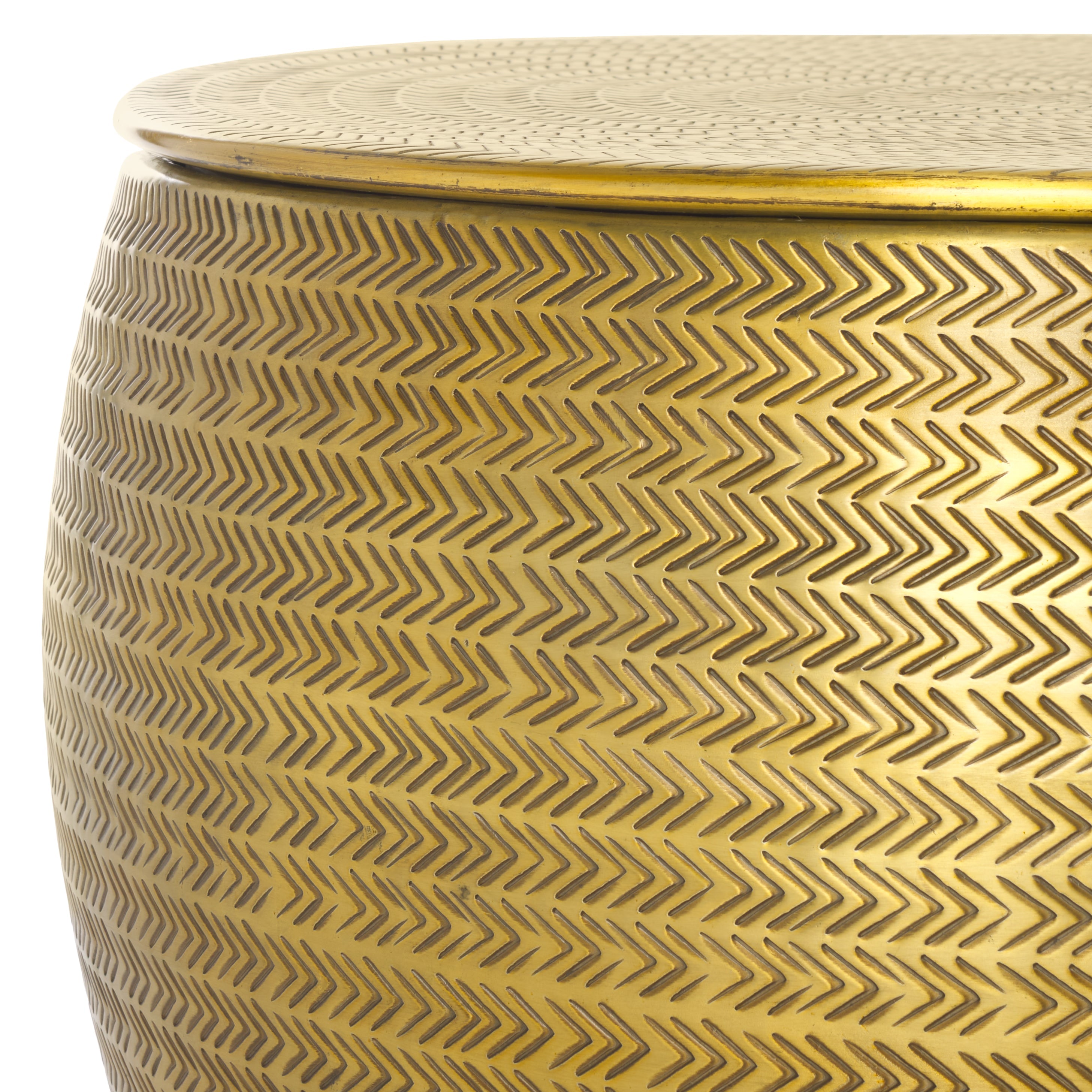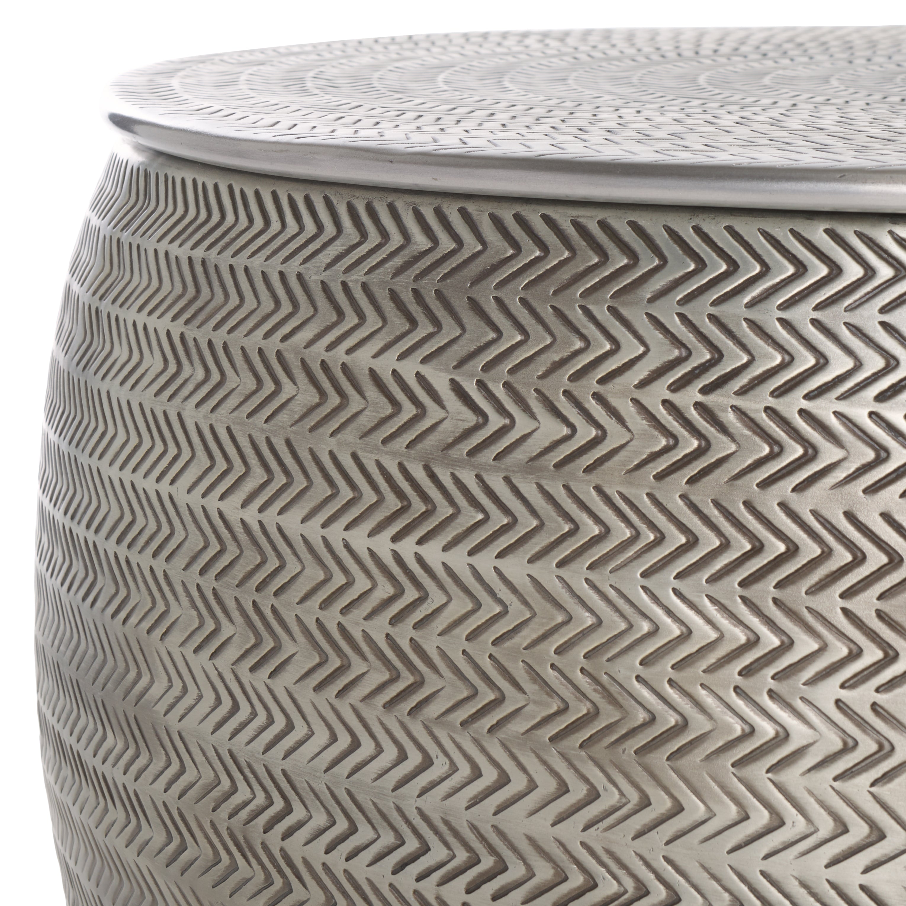 Lend an elevated and polished touch to any room with our Apoline coffee table with storage. With a gleaming finish, rich artistry, and added storage, our coffee table brings convenience and charm to any room. Its round drum shape is made from aluminum with a stunning finish. With an intricate chevron pattern engraved onto its surface, our coffee table serves as a glamorous and charming centerpiece for any room. Its top can easily be removed to reveal roomy storage inside for keeping your lounge or bedroom tidy at all times.