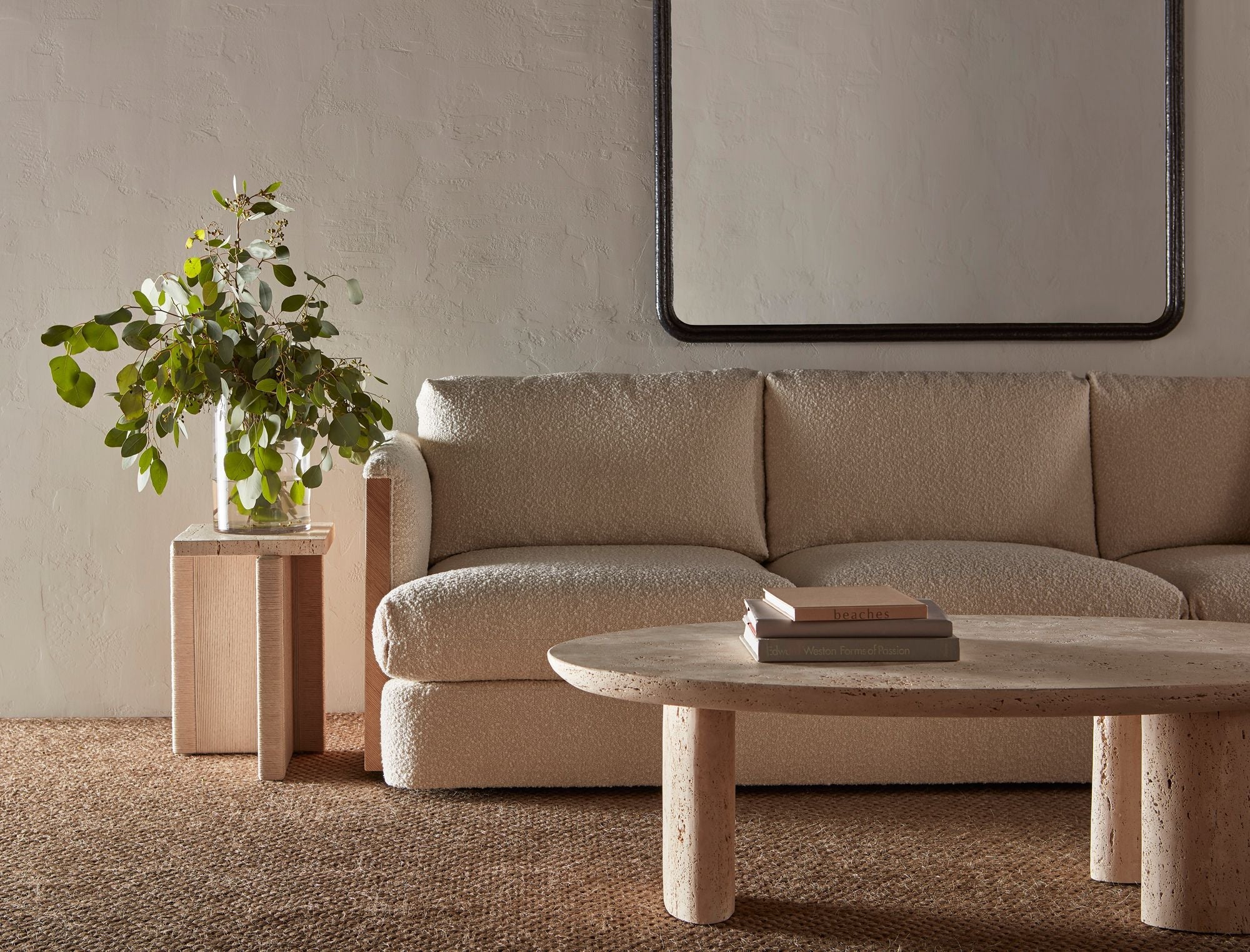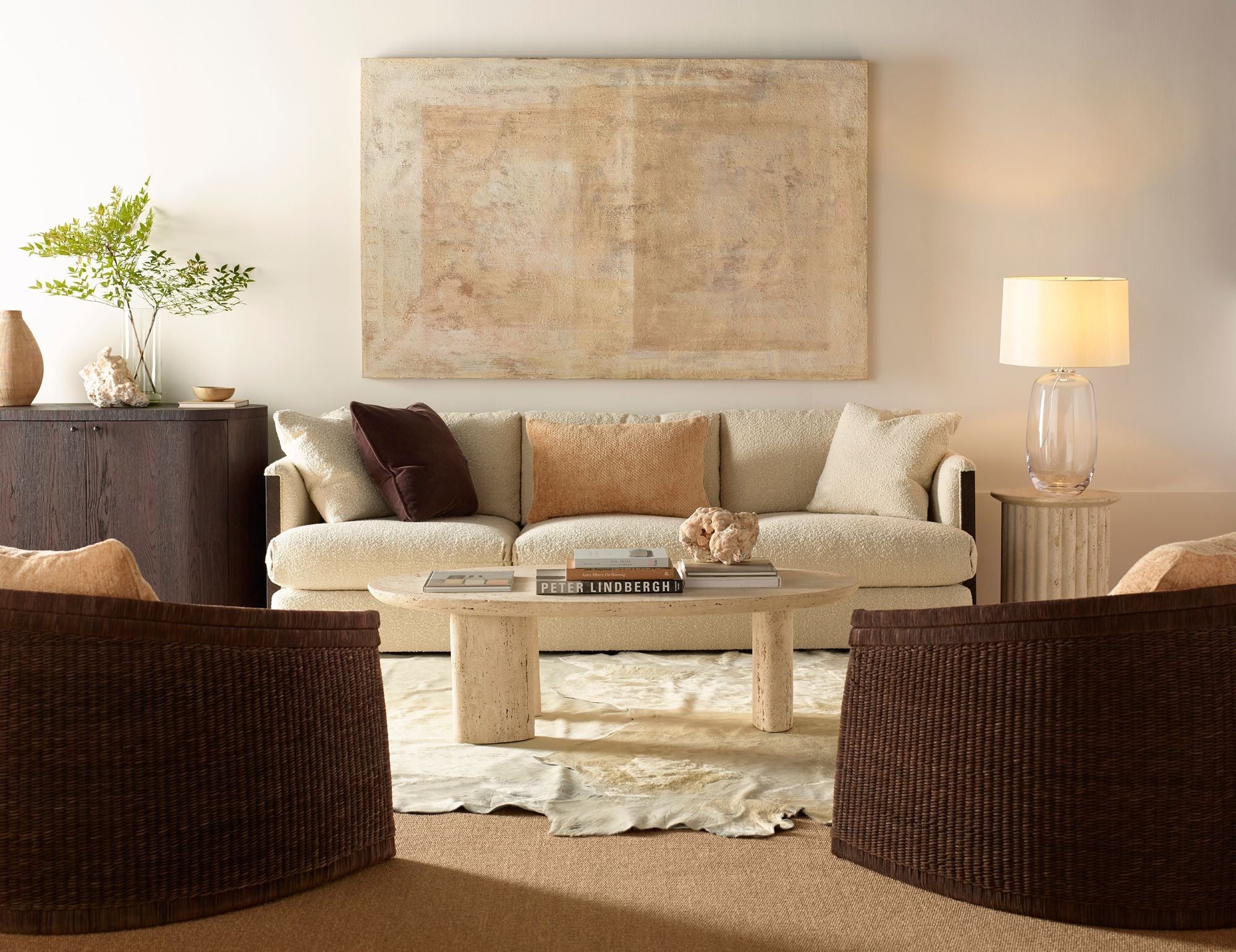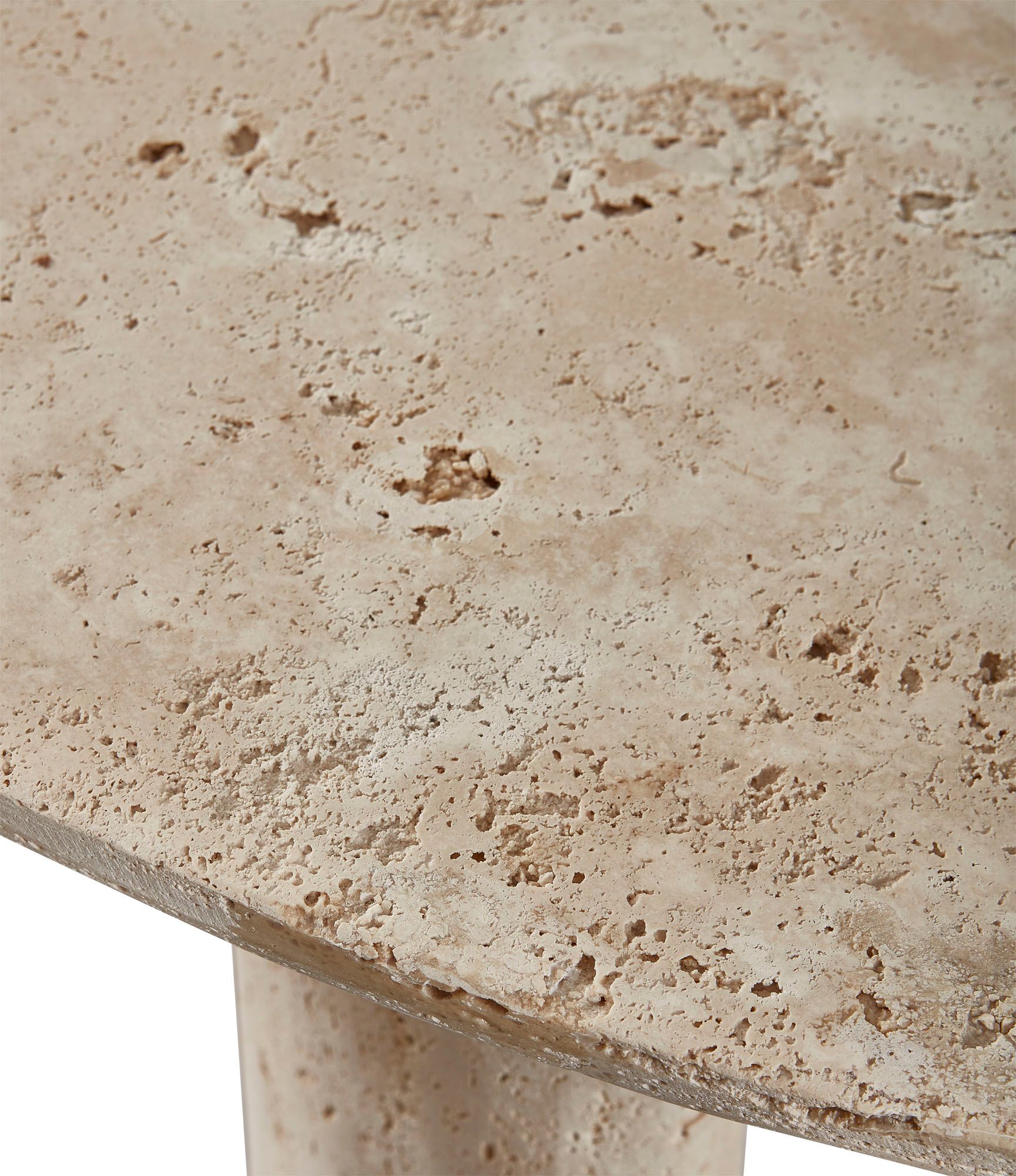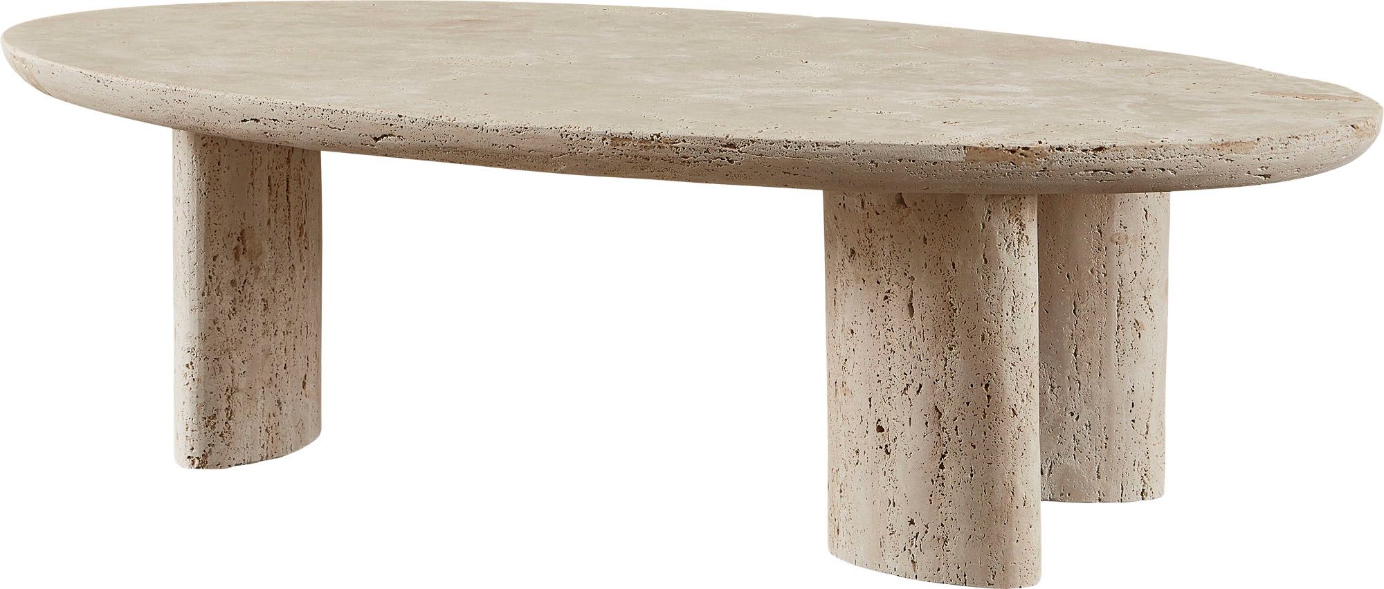 Relaxed and earthy, the Column Cocktail Table adds a vintage look to any room. Its '70s-inspired proportions, creme travertine surface and high-texture design create a feeling of depth and dimension.